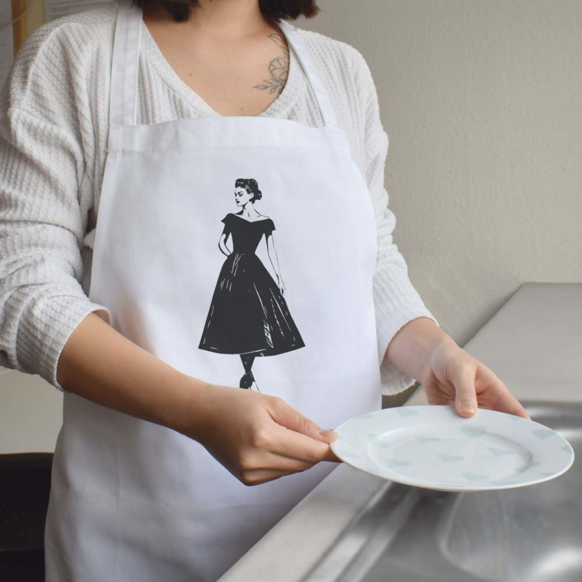 'Elegant Woman in Dress' Unisex Cooking Apron (AP00070738)