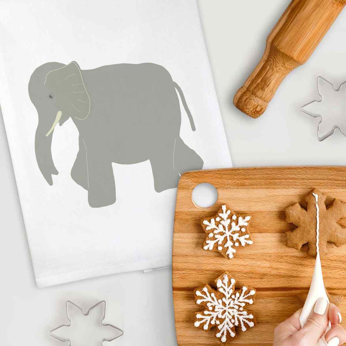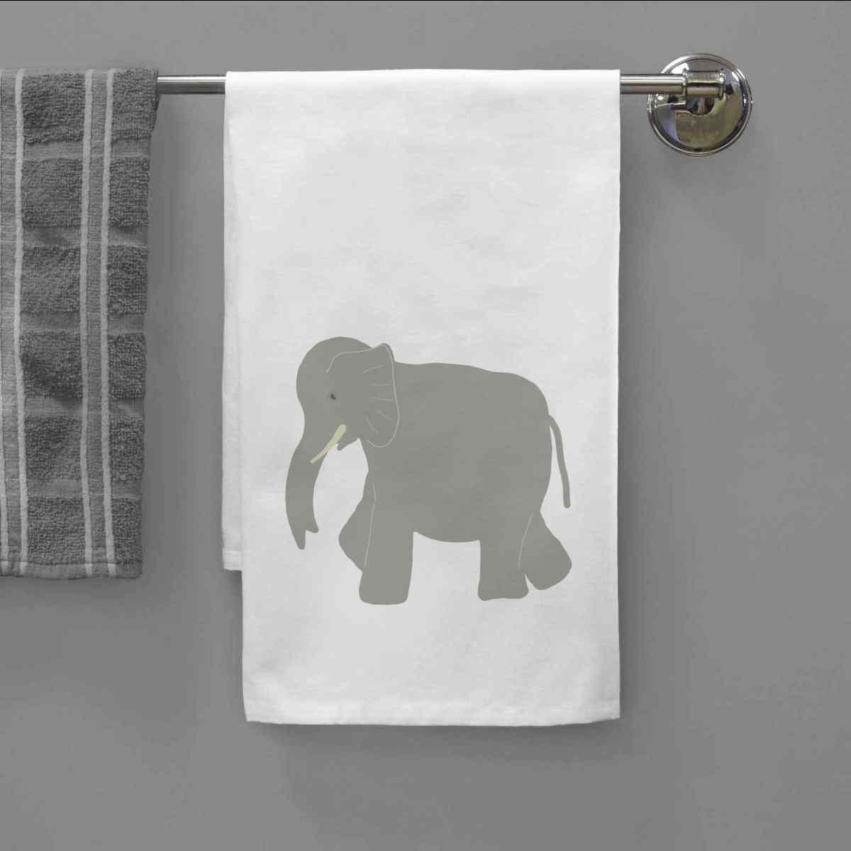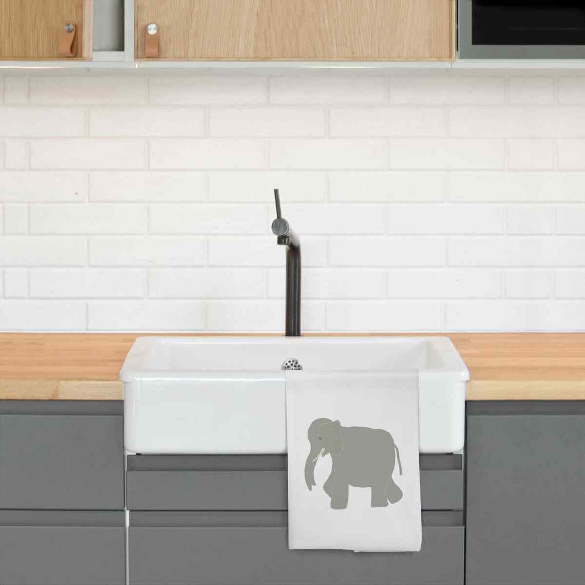 - White cotton tea towel with hanging loop