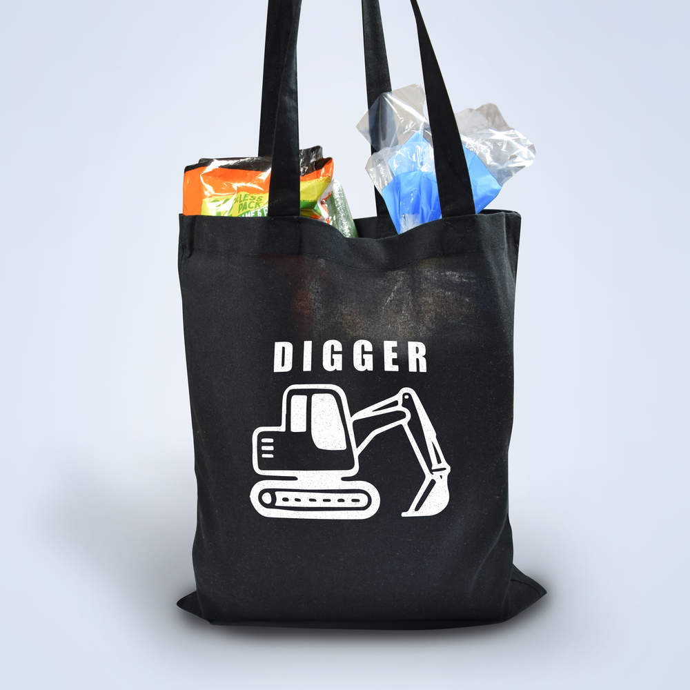 'This image depicts an excavator, a robust piece of construction machinery with a prominent digging arm and bucket, and tracked treads for stability. The clear and simple illustration is ideal for educational materials, work-related themes, or any product associated with building and groundwork.'