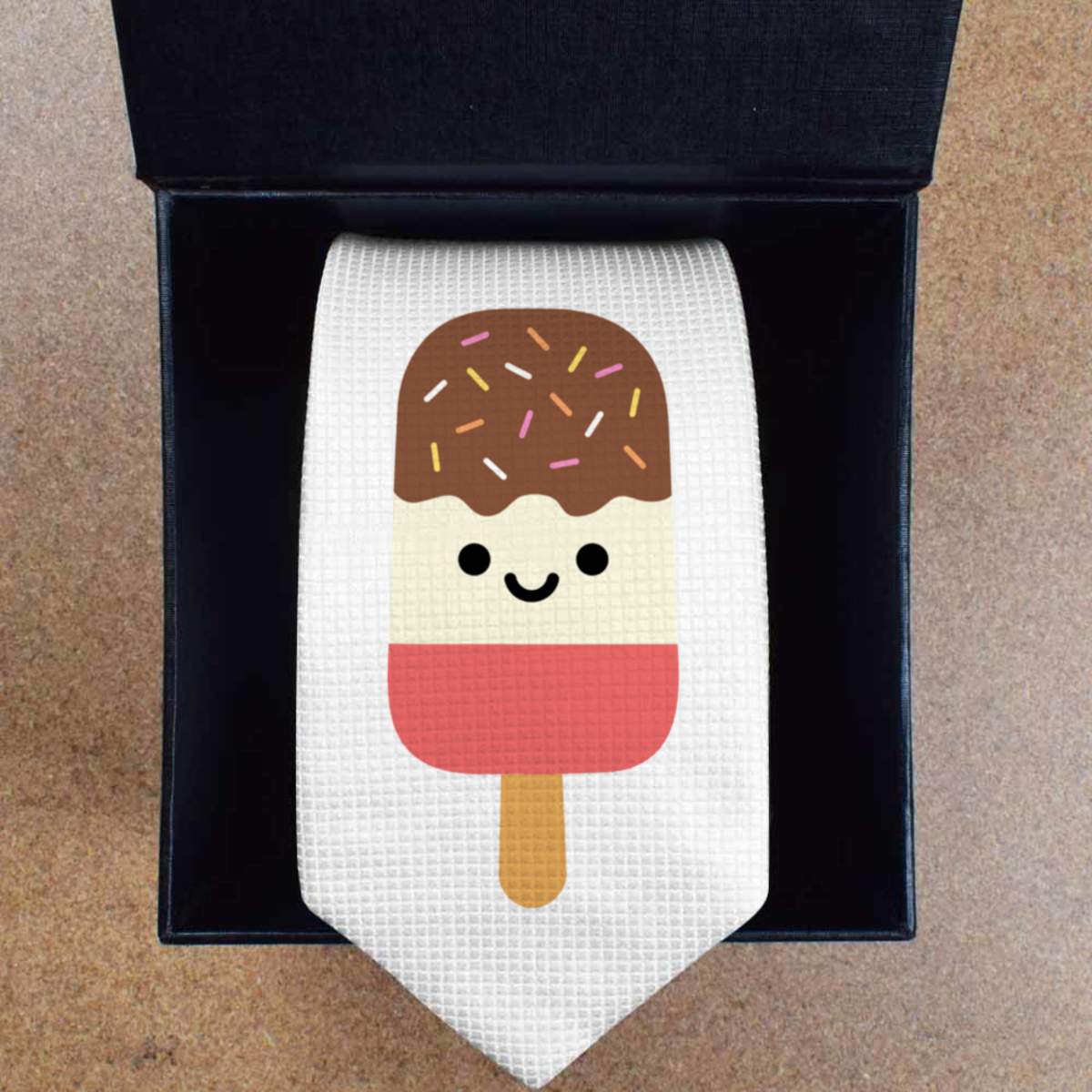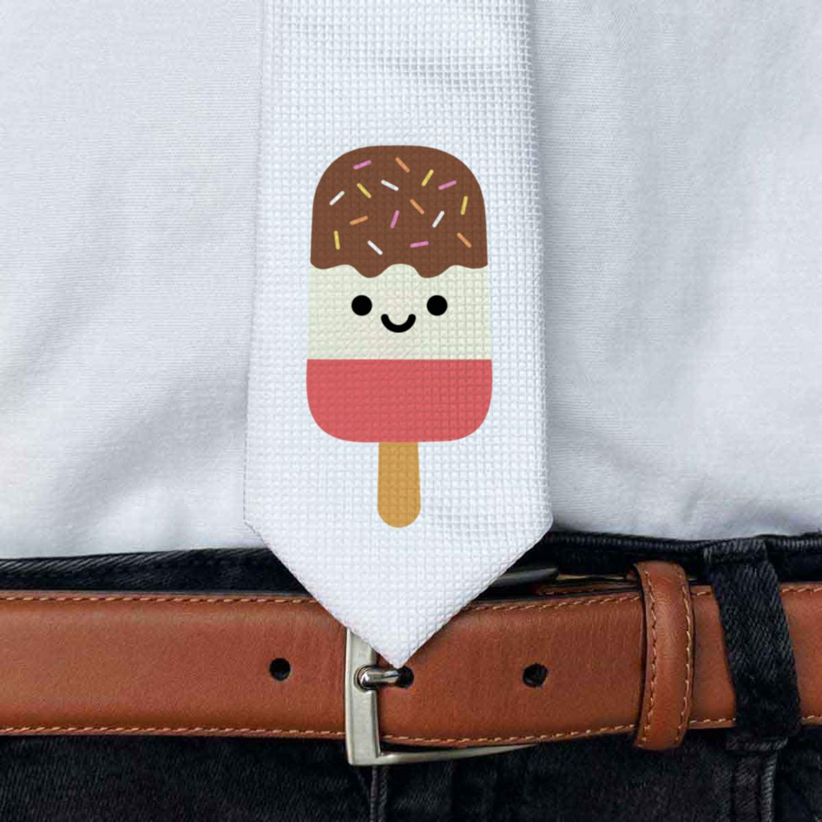 This stylish slim white tie is guaranteed to add class to any outfit. Printed on the front with a design from one of our talented designers, these ties are perfect for formal events, special occasions or making a statement at the office.