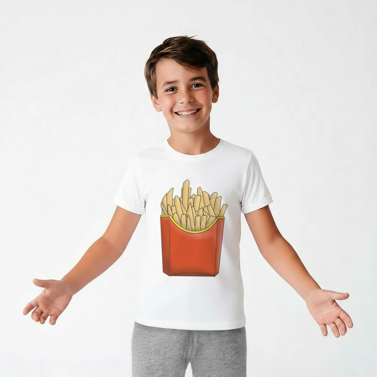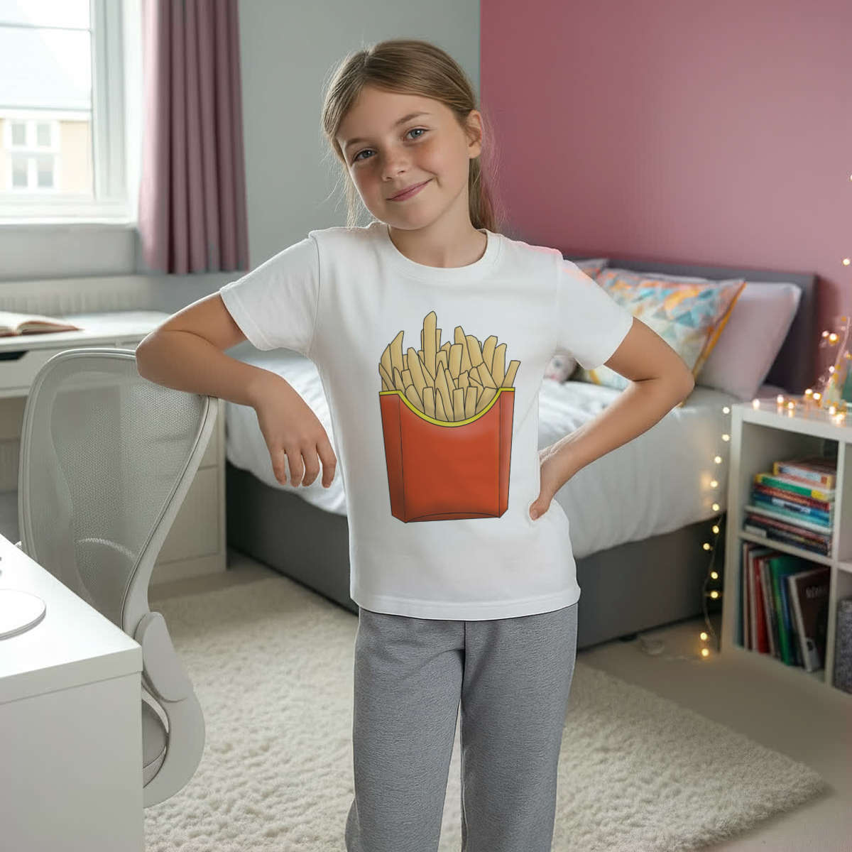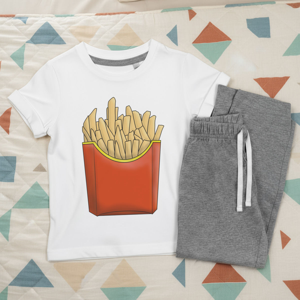 'Fast Food Fries' Kids Cotton Pyjama Set – Comfortable Children's Nightwear, Sleepwear and Loungewear - Unisex for Boys and Girls - Grey, 11-13 Years (KP00101825)
