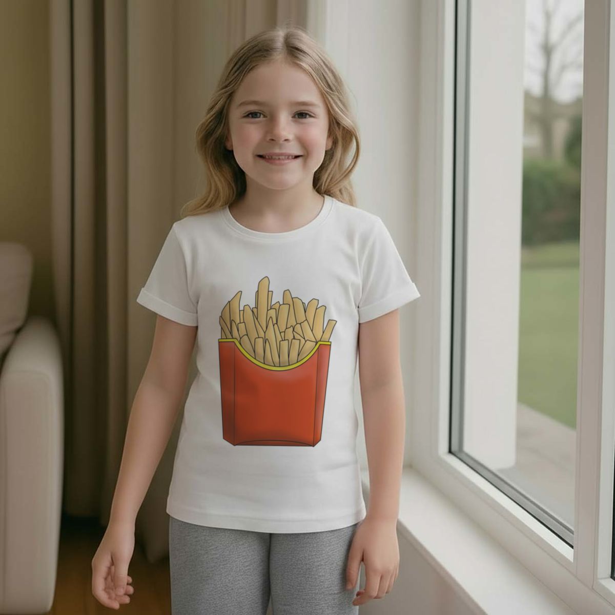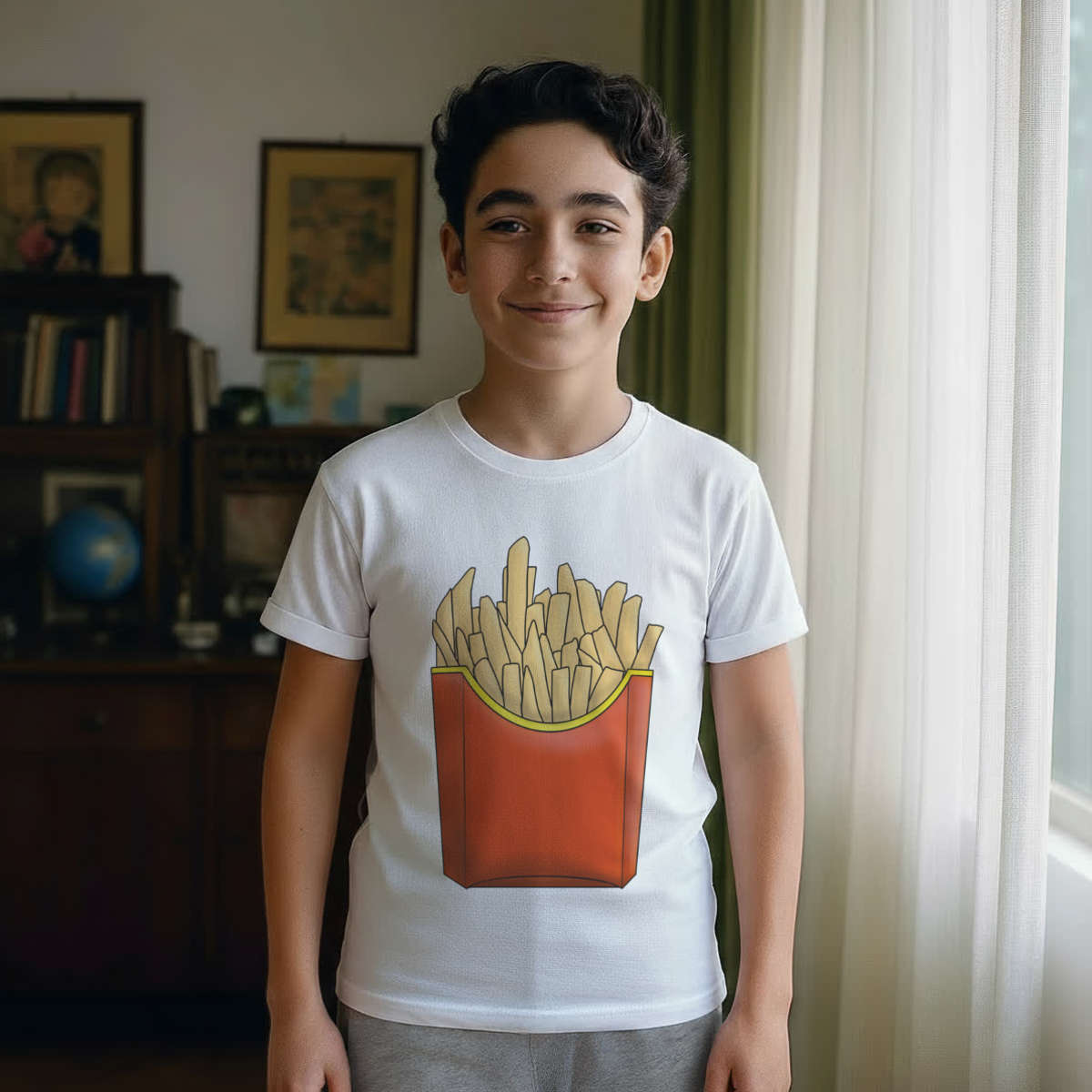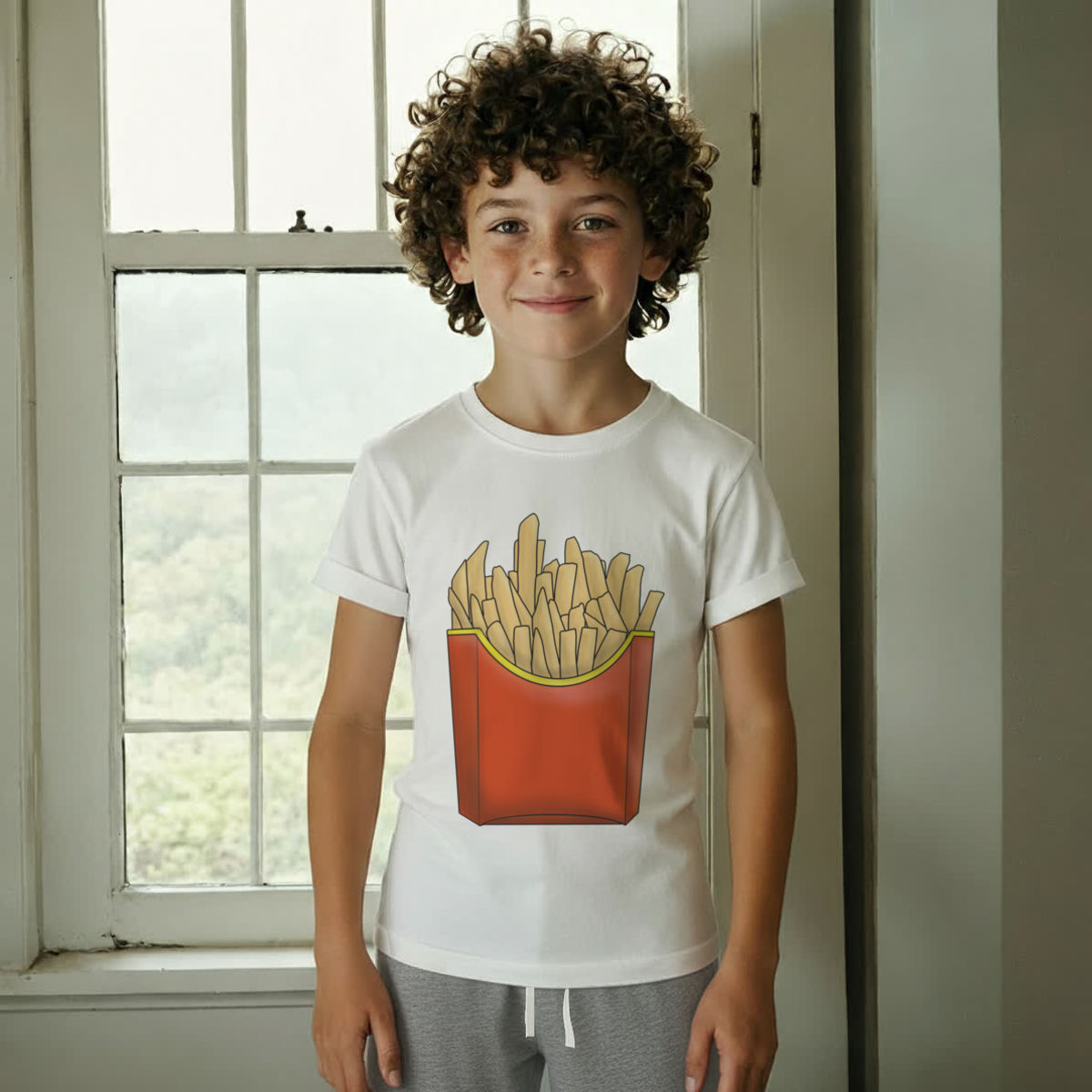 'Fast Food Fries' Kids Cotton Pyjama Set – Comfortable Children's Nightwear, Sleepwear and Loungewear - Unisex for Boys and Girls - Grey, 11-13 Years (KP00101825)