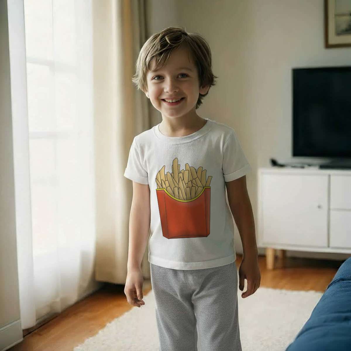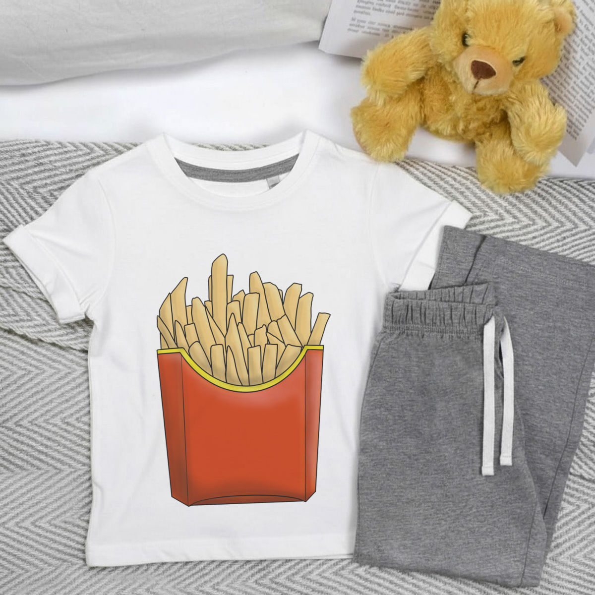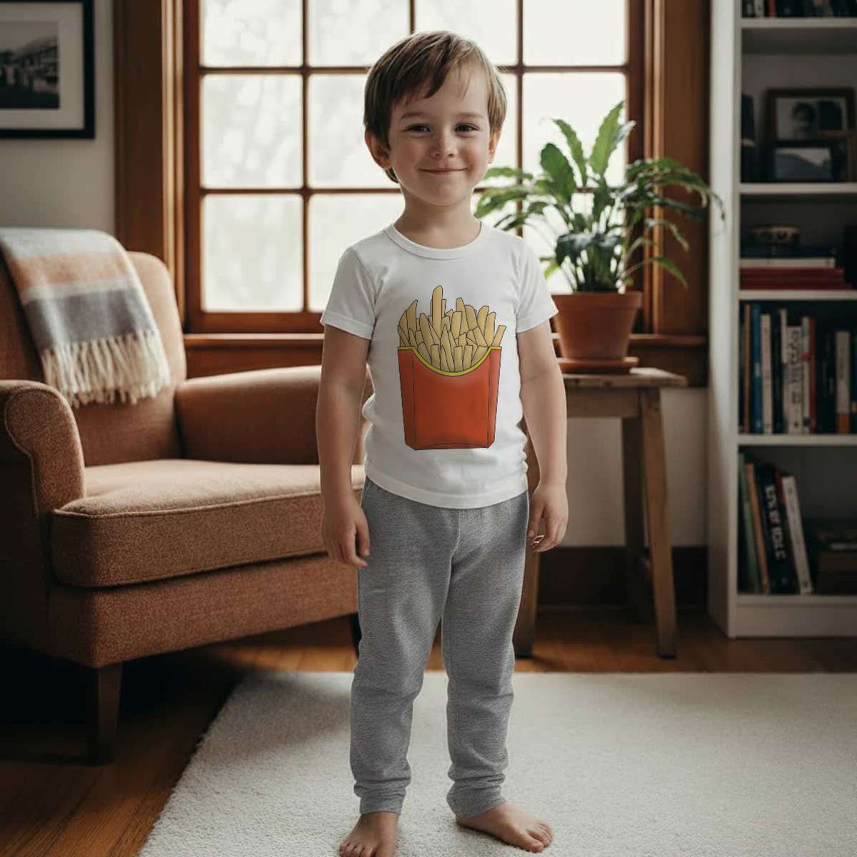 'Fast Food Fries' Kids Cotton Pyjama Set – Comfortable Children's Nightwear, Sleepwear and Loungewear - Unisex for Boys and Girls – Grey (KP035246)