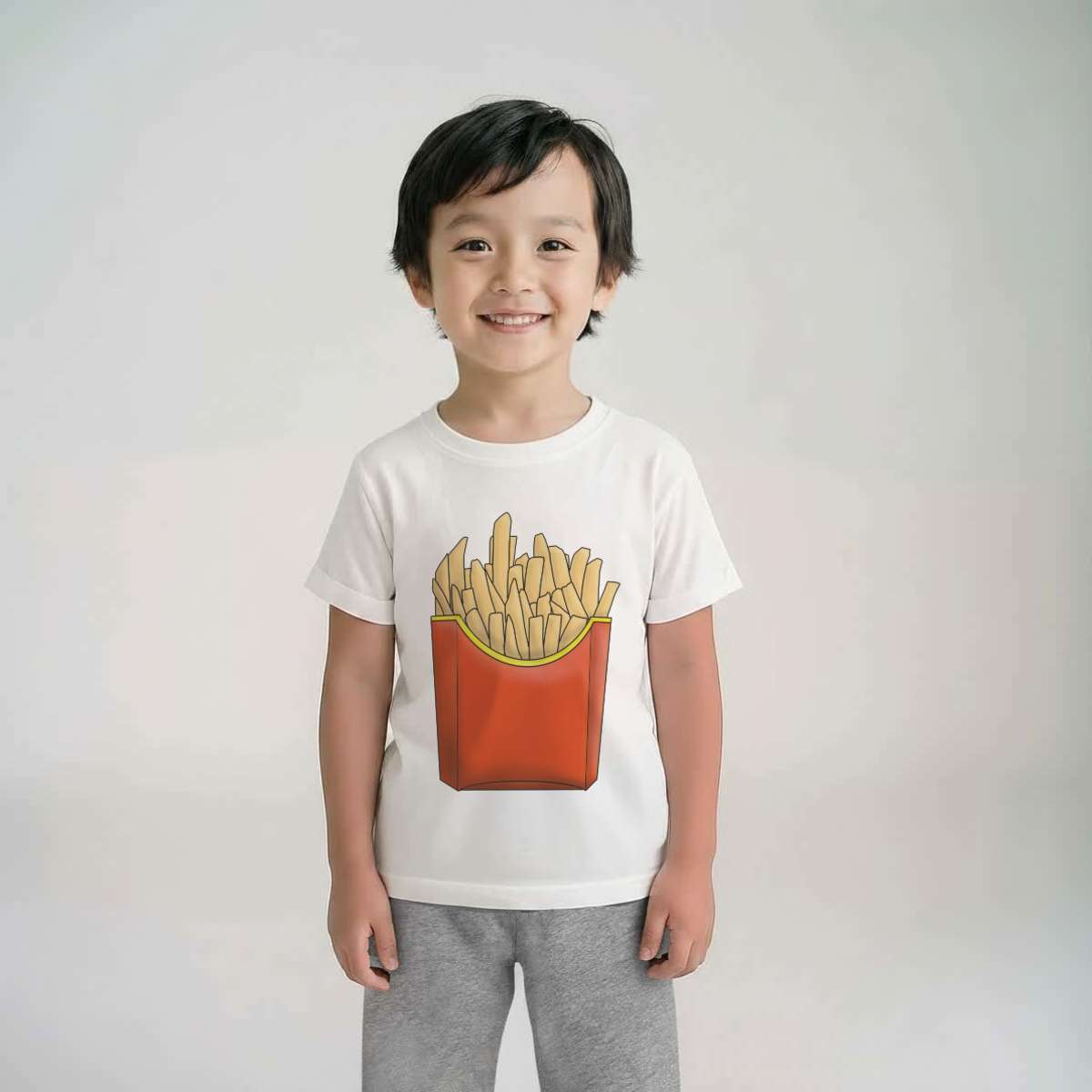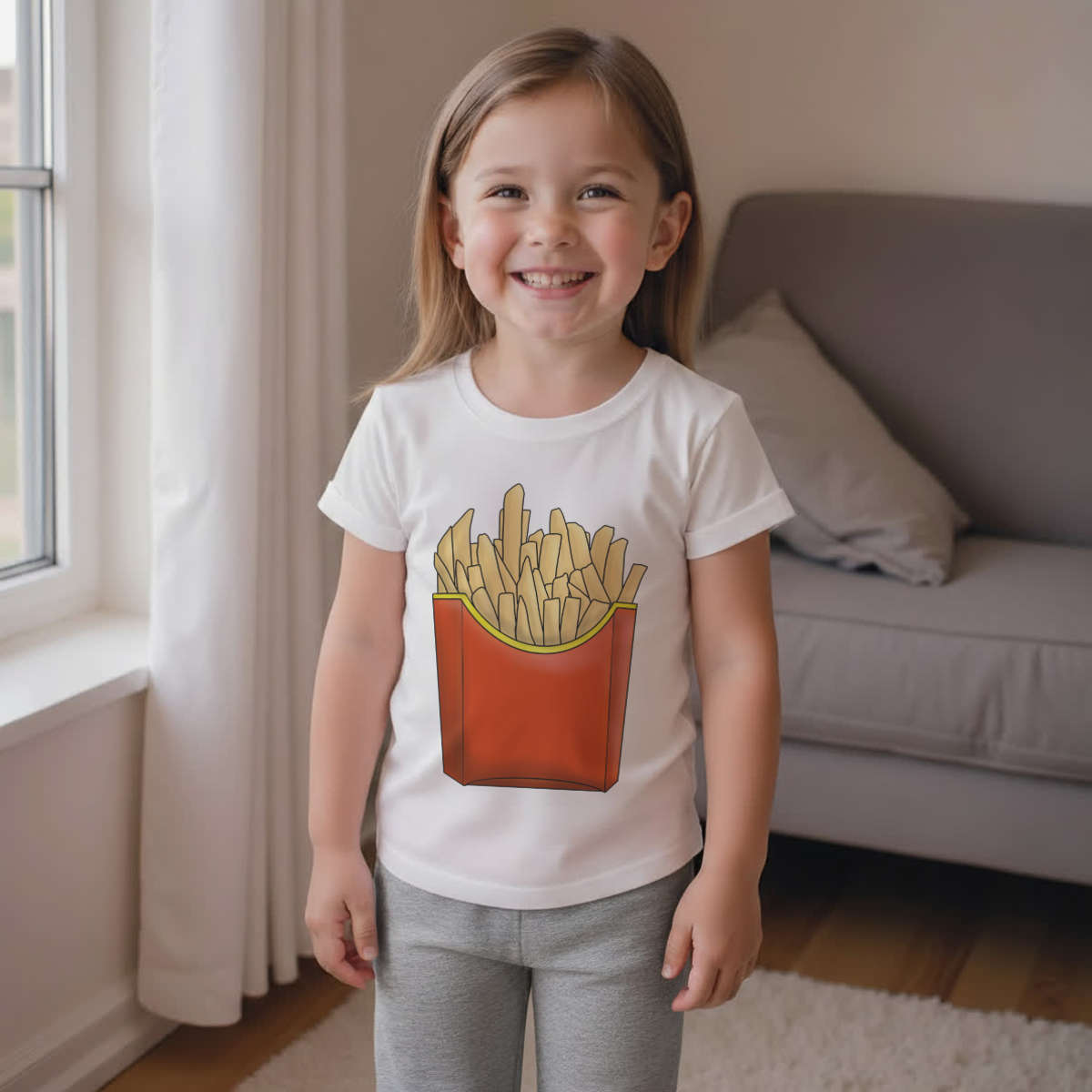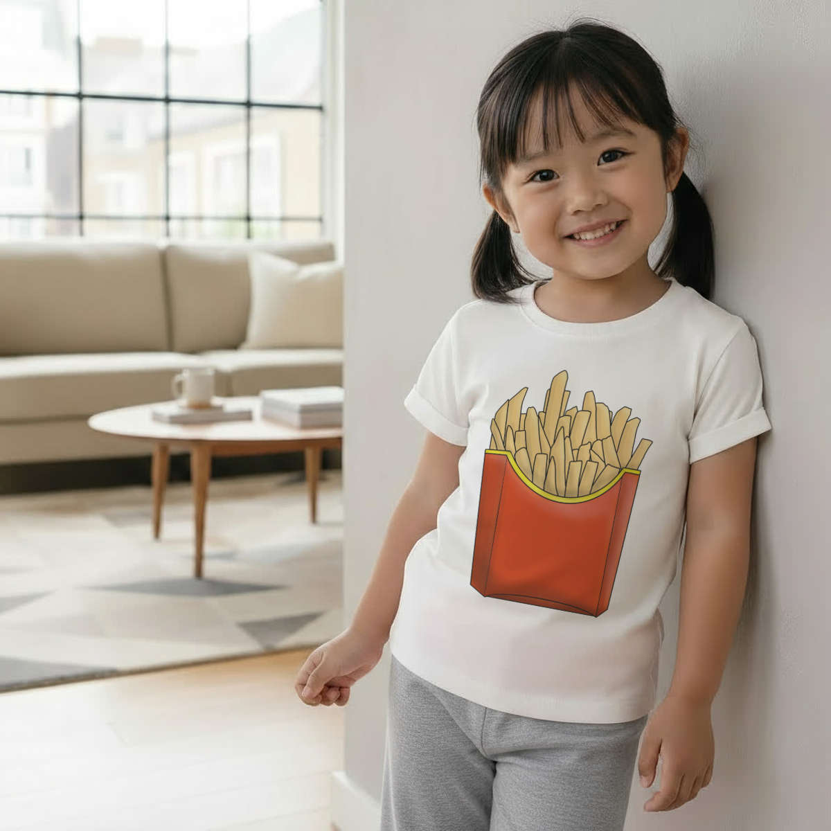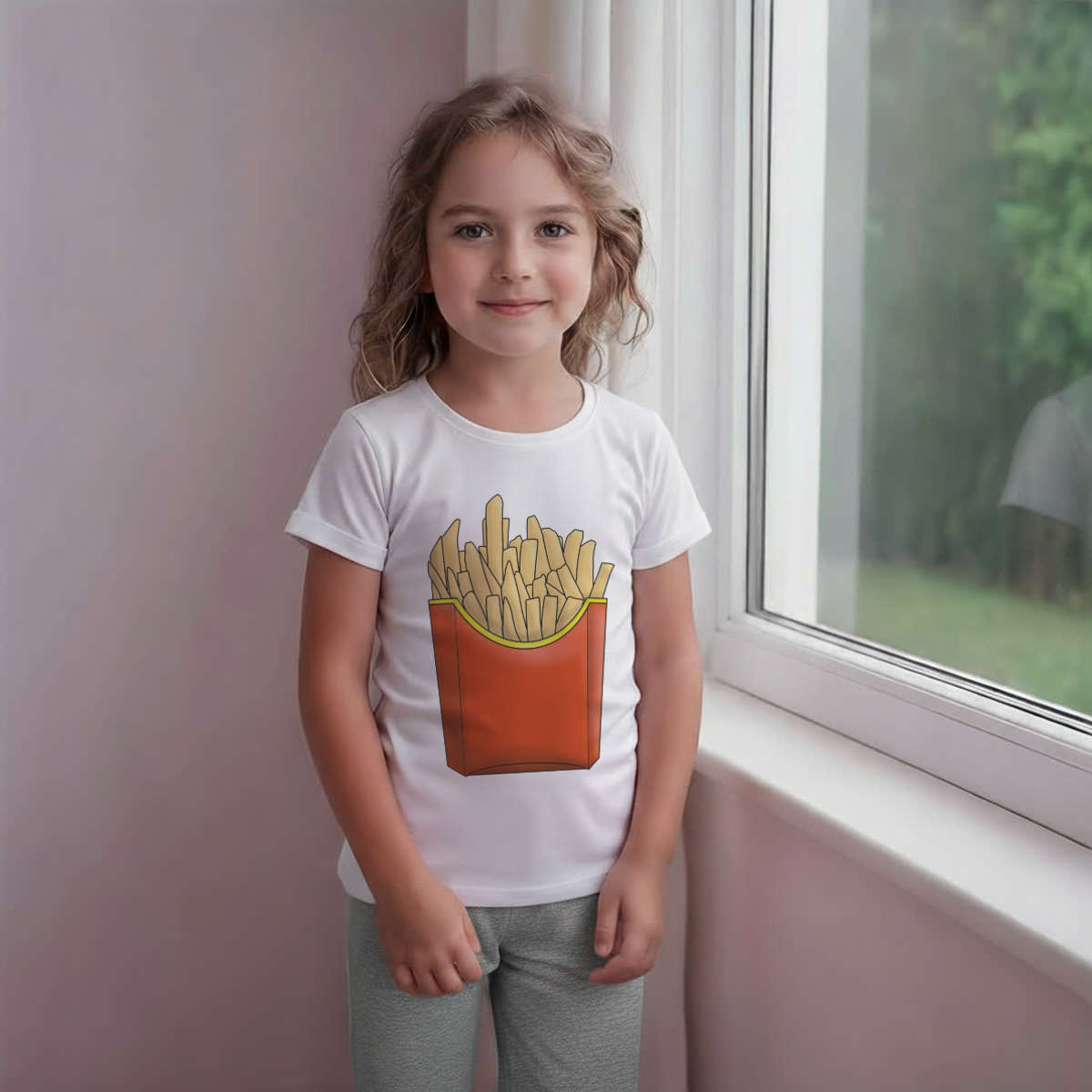 'Fast Food Fries' Kids Cotton Pyjama Set – Comfortable Children's Nightwear, Sleepwear and Loungewear - Unisex for Boys and Girls – Grey (KP035246)