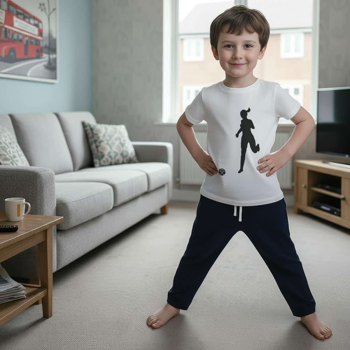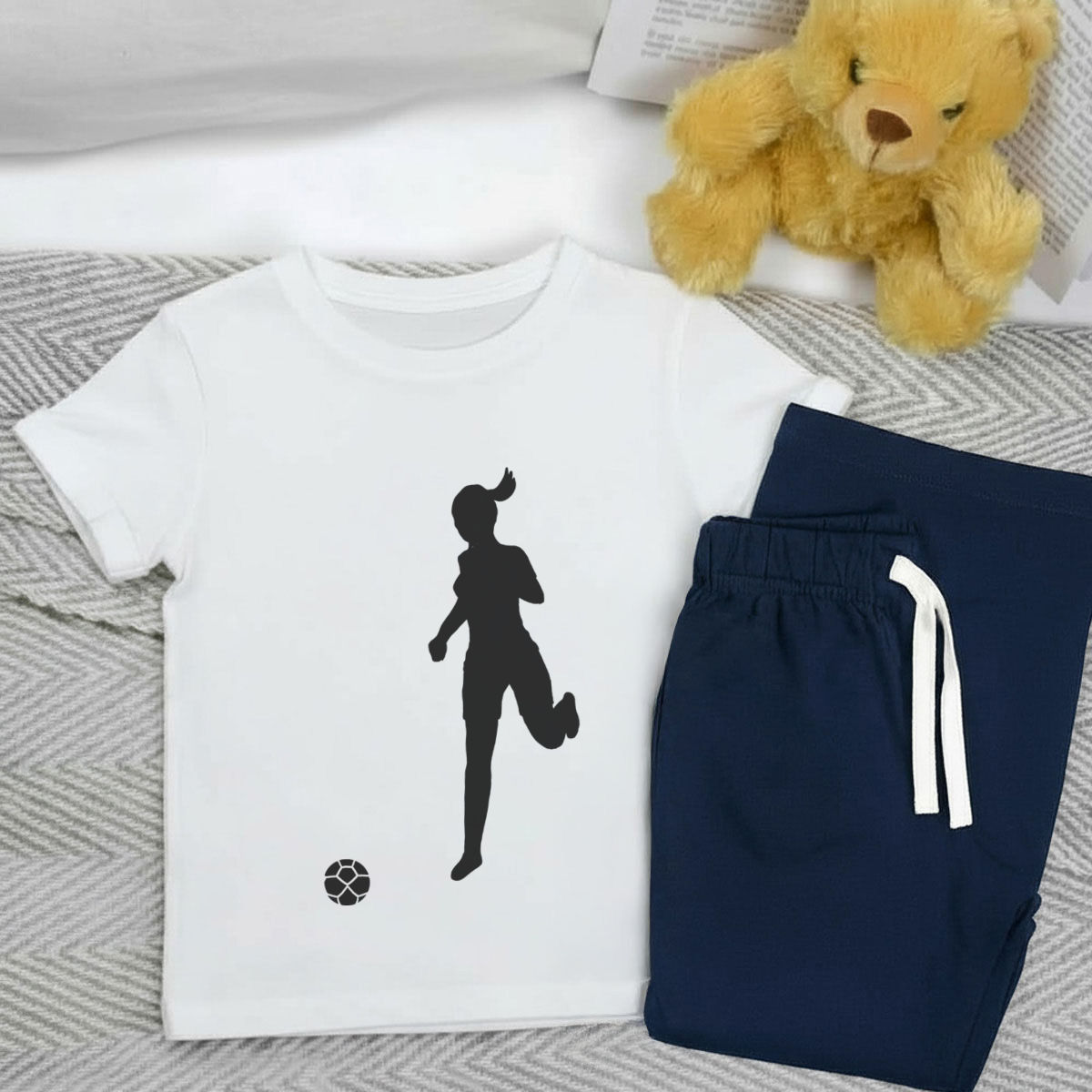 'Female Football Player' Kids Cotton Pyjama Set – Comfortable Children's Nightwear, Sleepwear and Loungewear - Unisex for Boys and Girls - Navy, 5-6 Years (KP00323115)