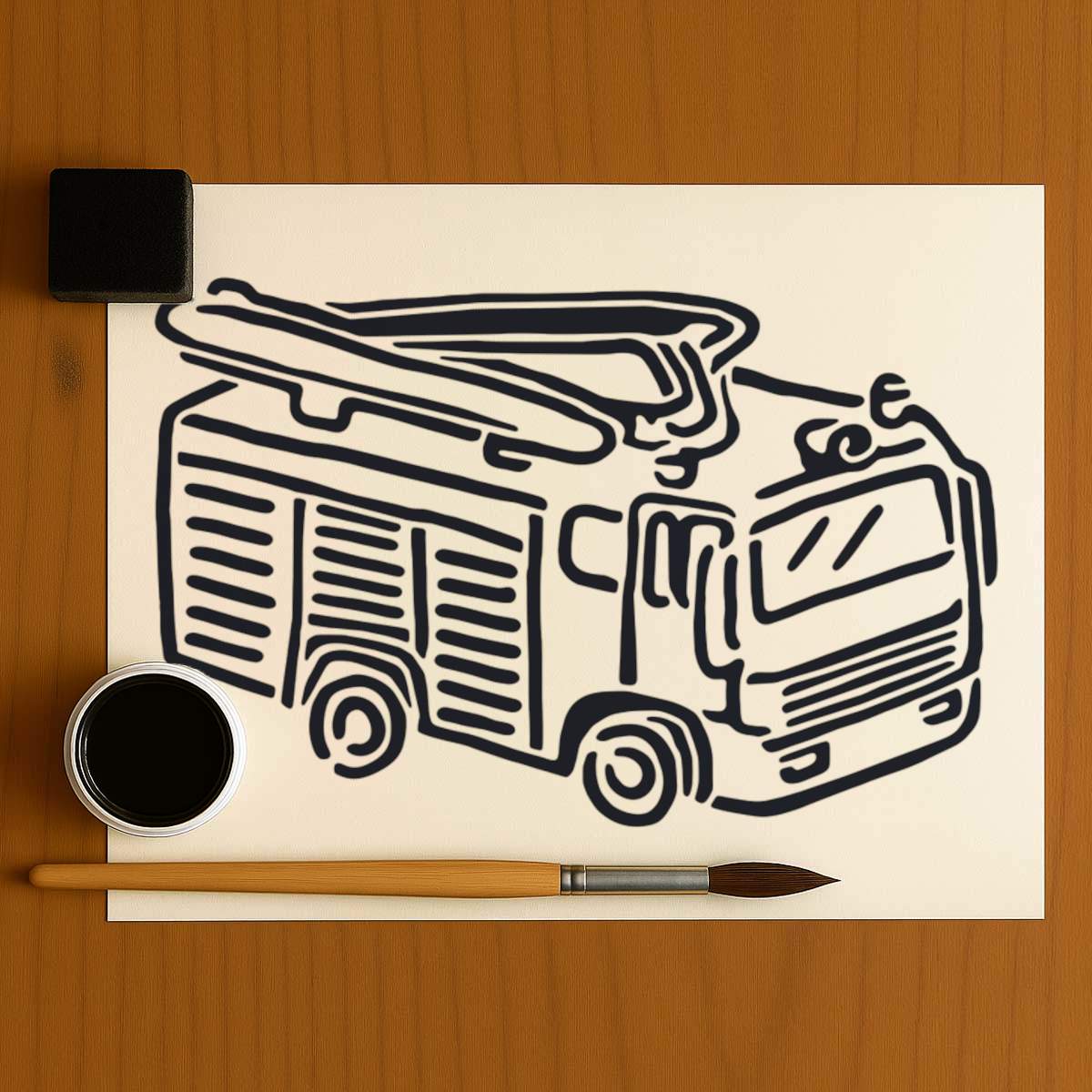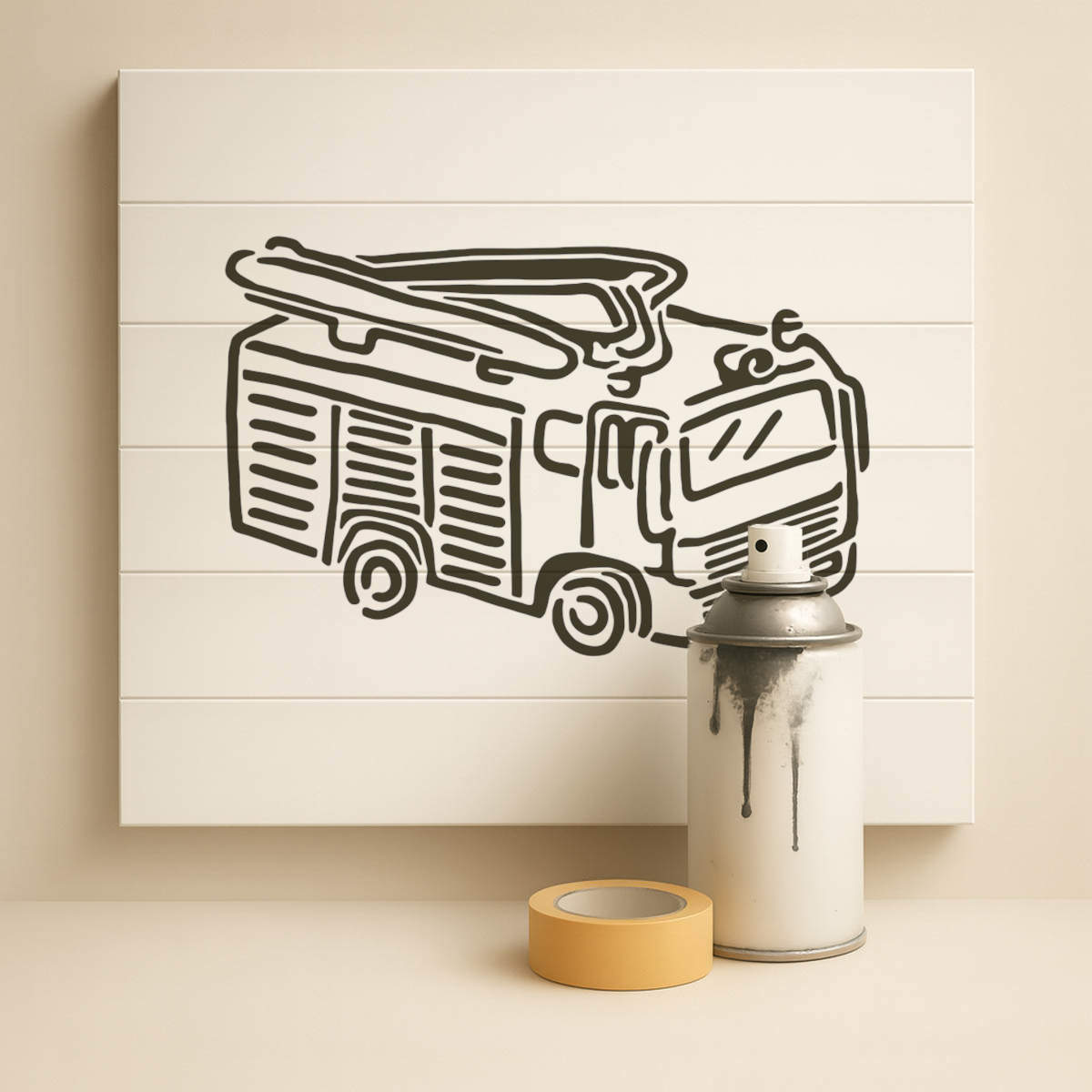 'Fire Engine' Reusable Stencil – Durable Decorative Template for Painting and Spraying on Walls, Tiles, Wood, Fabric & Craft Projects - M (A5) (WS00029664)