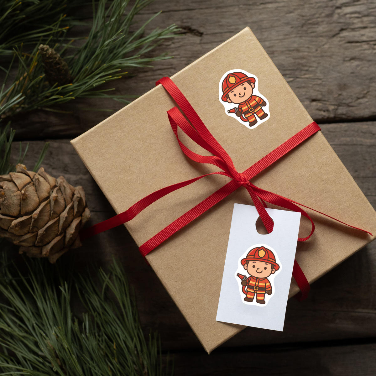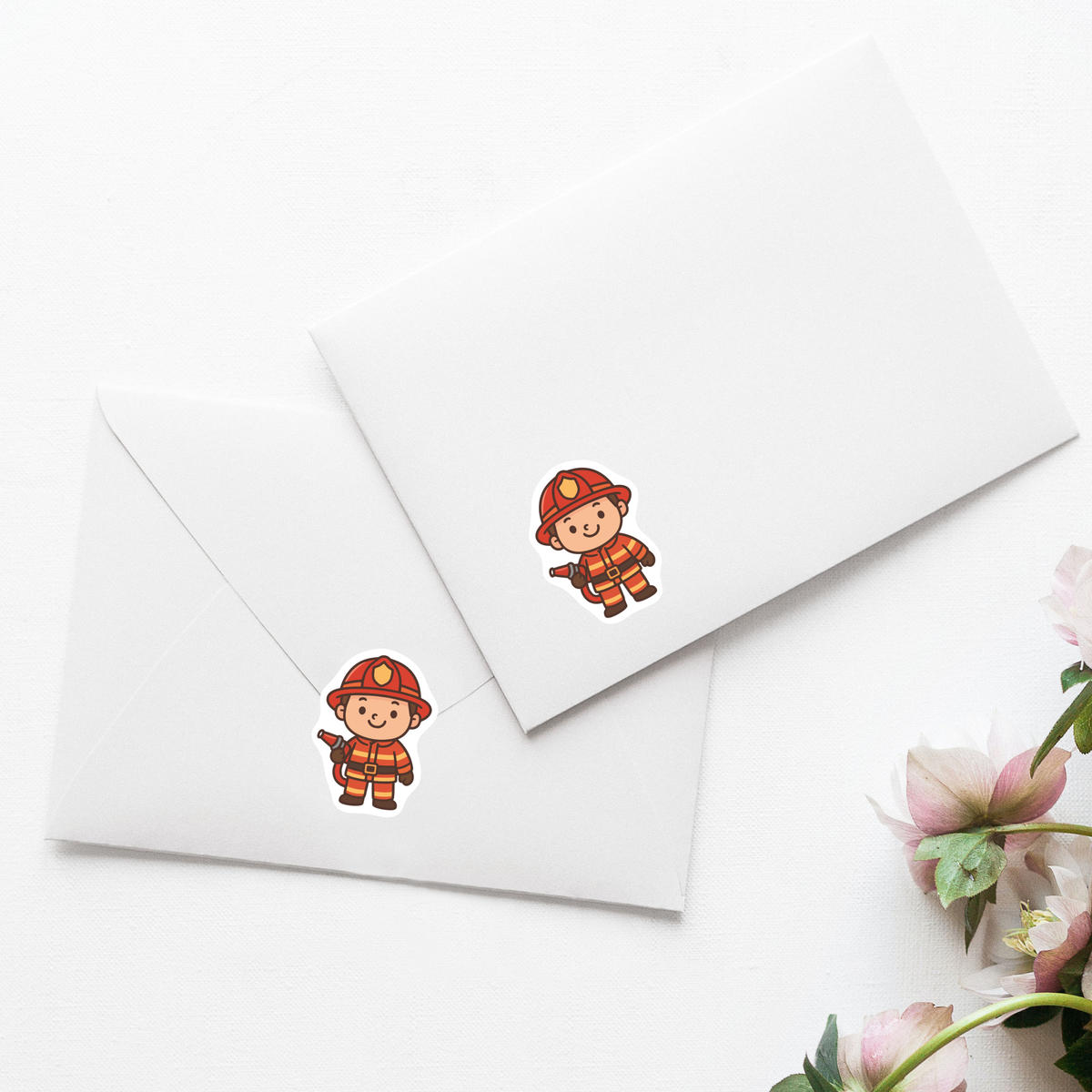 'A friendly firefighter in full gear, ready to bravely serve and protect'