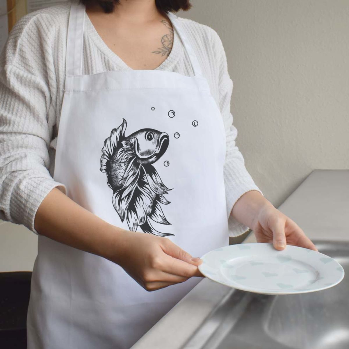 Cook in style and comfort in this fabulous kitchen apron. Our practical, full length aprons are suitable for men and women. Made from 100% cotton, each apron is printed on the front with a unique design and provides good coverage whilst cooking and baking. Each waist tie is 70cm long to ensure a comfortable and adjustable fit.