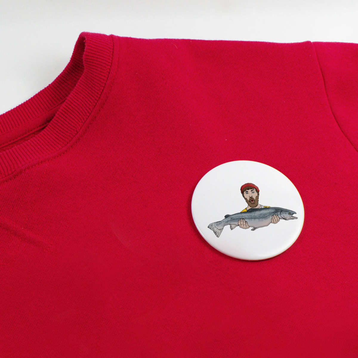 'Fisherman Holding Fish' Button Pin Badges (BB029879)