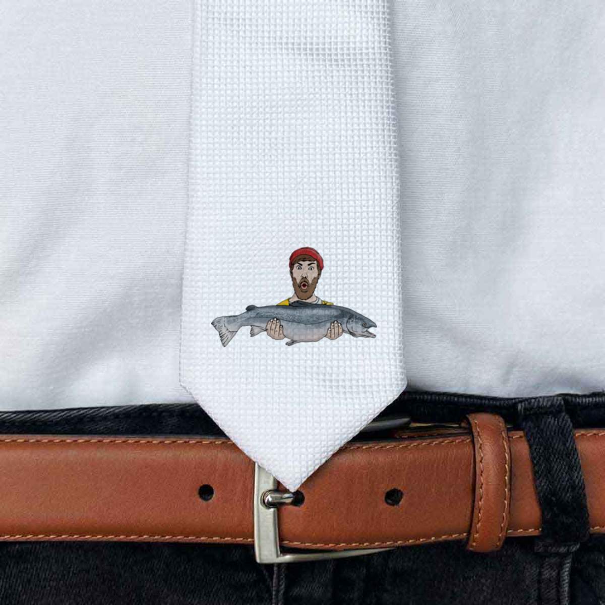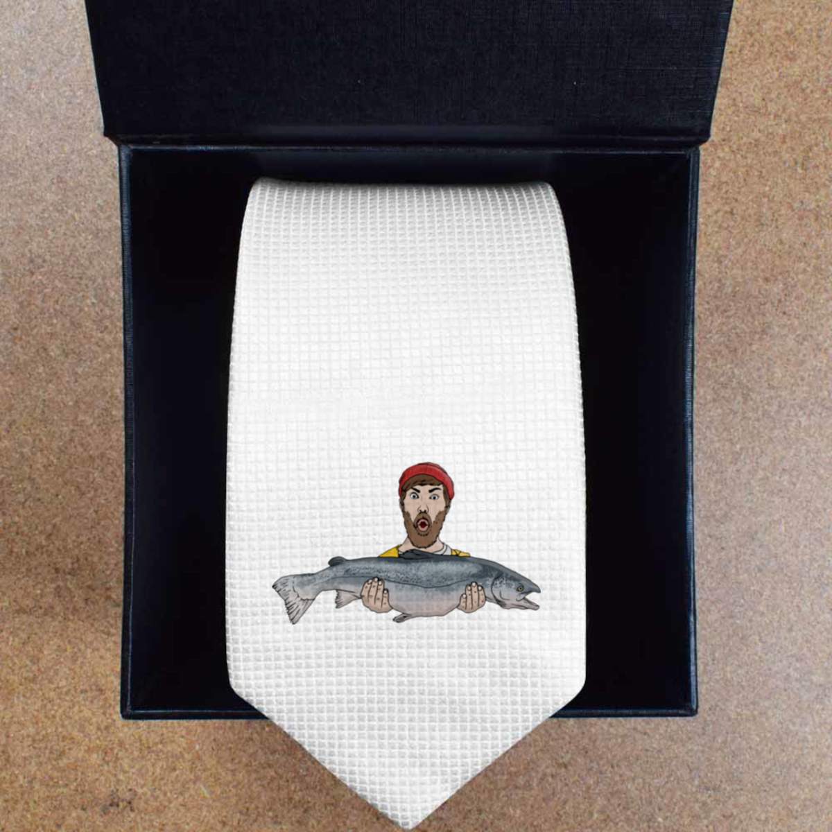 'Fisherman Holding Fish' White Tie / Necktie with Gift Box (AT00008495)