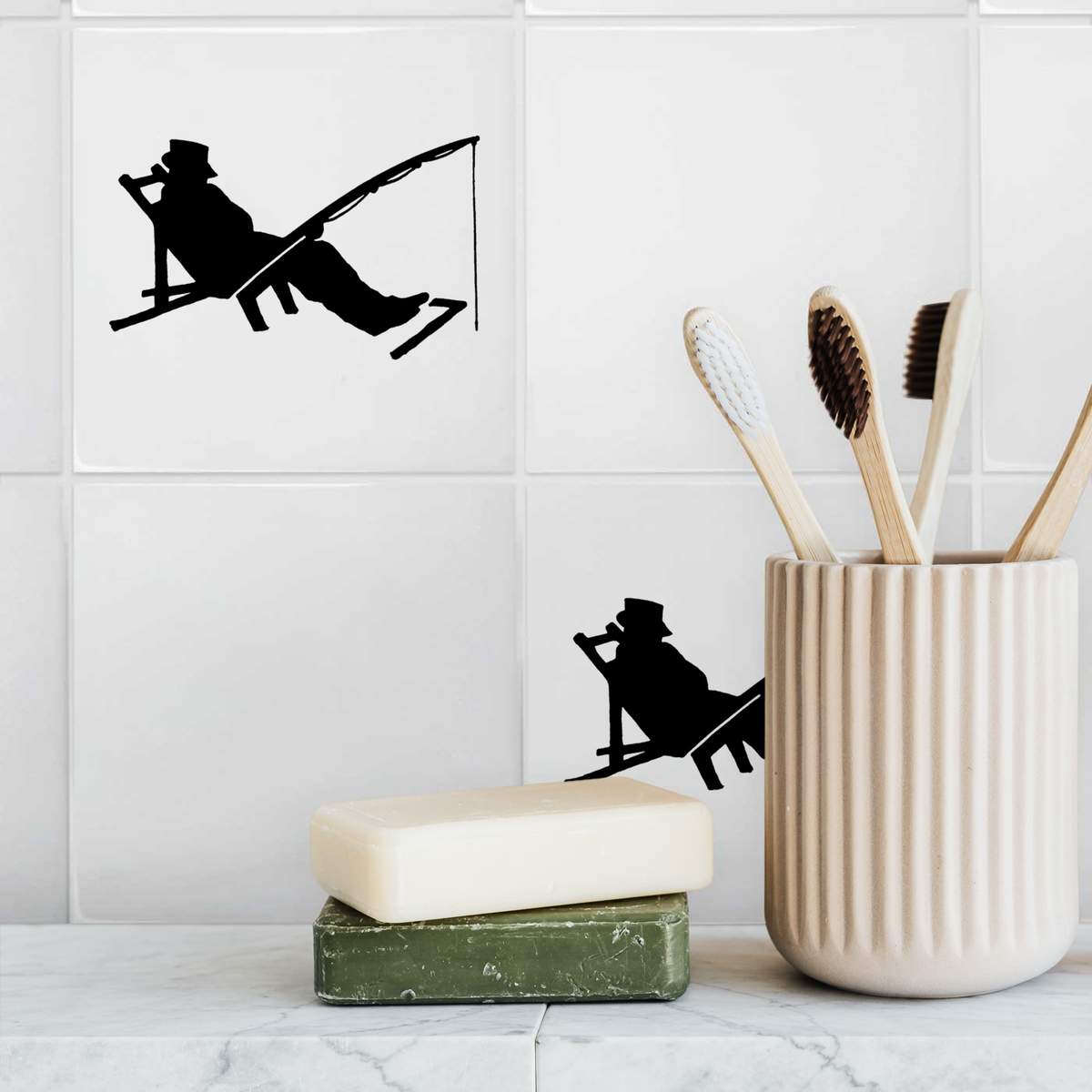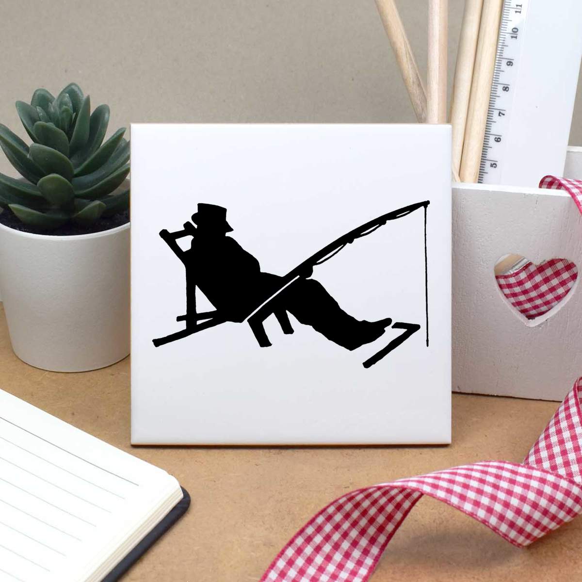 'Fisherman Silhouette' 108mm Square Ceramic Tile (TD00010543)