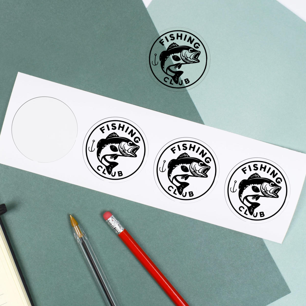 'A classic emblem for fishing enthusiasts, featuring a fish and hook, perfect for any fishing club or outdoor adventure.'
