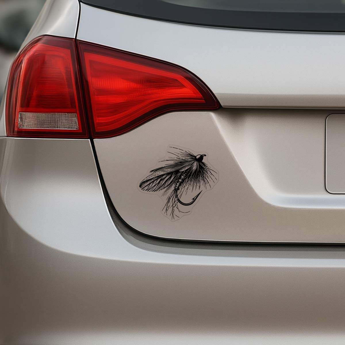 'Fishing Fly' Clear Premium Vinyl Decal Stickers – Waterproof, Durable & Easy to Apply - For Car Bumpers, Windows, Bins & More - Medium (100mm) (DC00131273)
