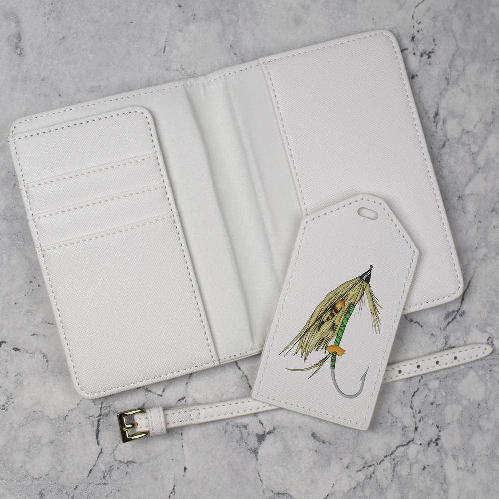 A luxury travel set for holiday makers and jet setters! This premium duo consists of a passport cover and matching luggage tag; both made from white, leather-look PU and printed with a unique design.