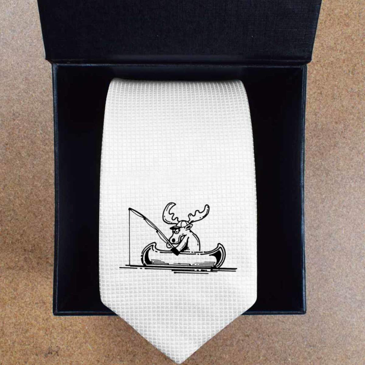 'Fishing Moose' White Tie / Necktie with Gift Box (AT00007321)