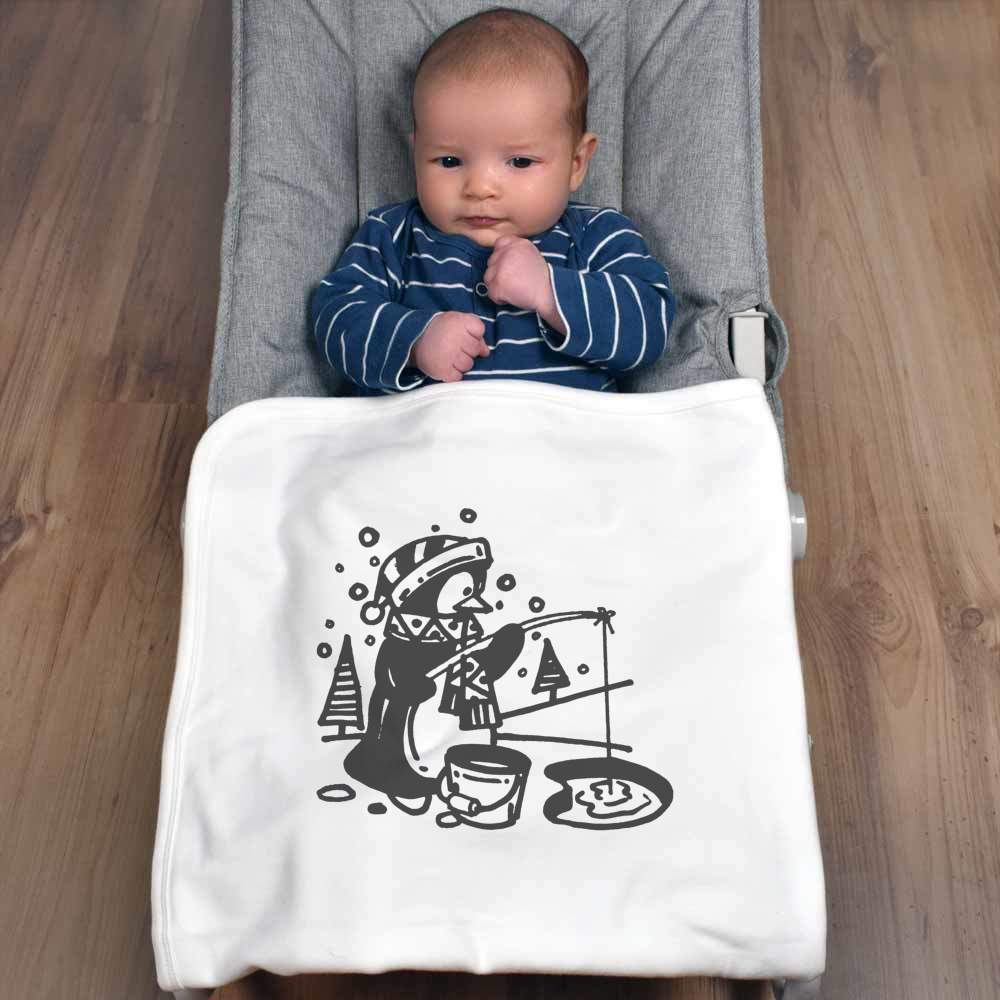 'Fishing Penguin' Cotton Baby Blanket / Shawl (BY00026592)