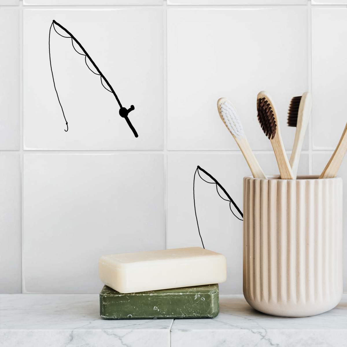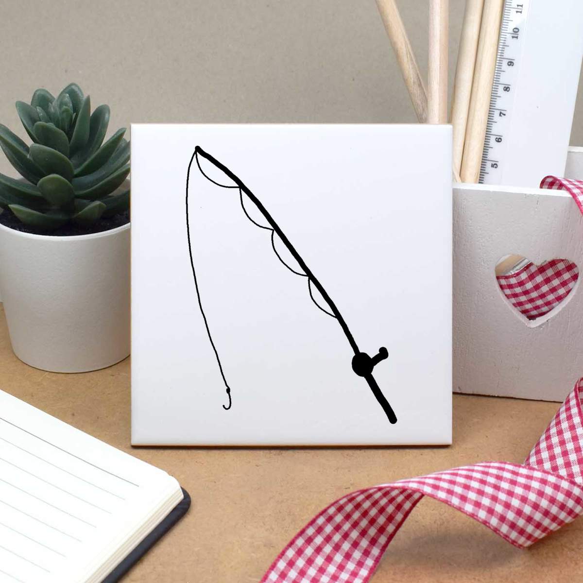 'Fishing rod' 108mm Square Ceramic Tile (TD00022087)