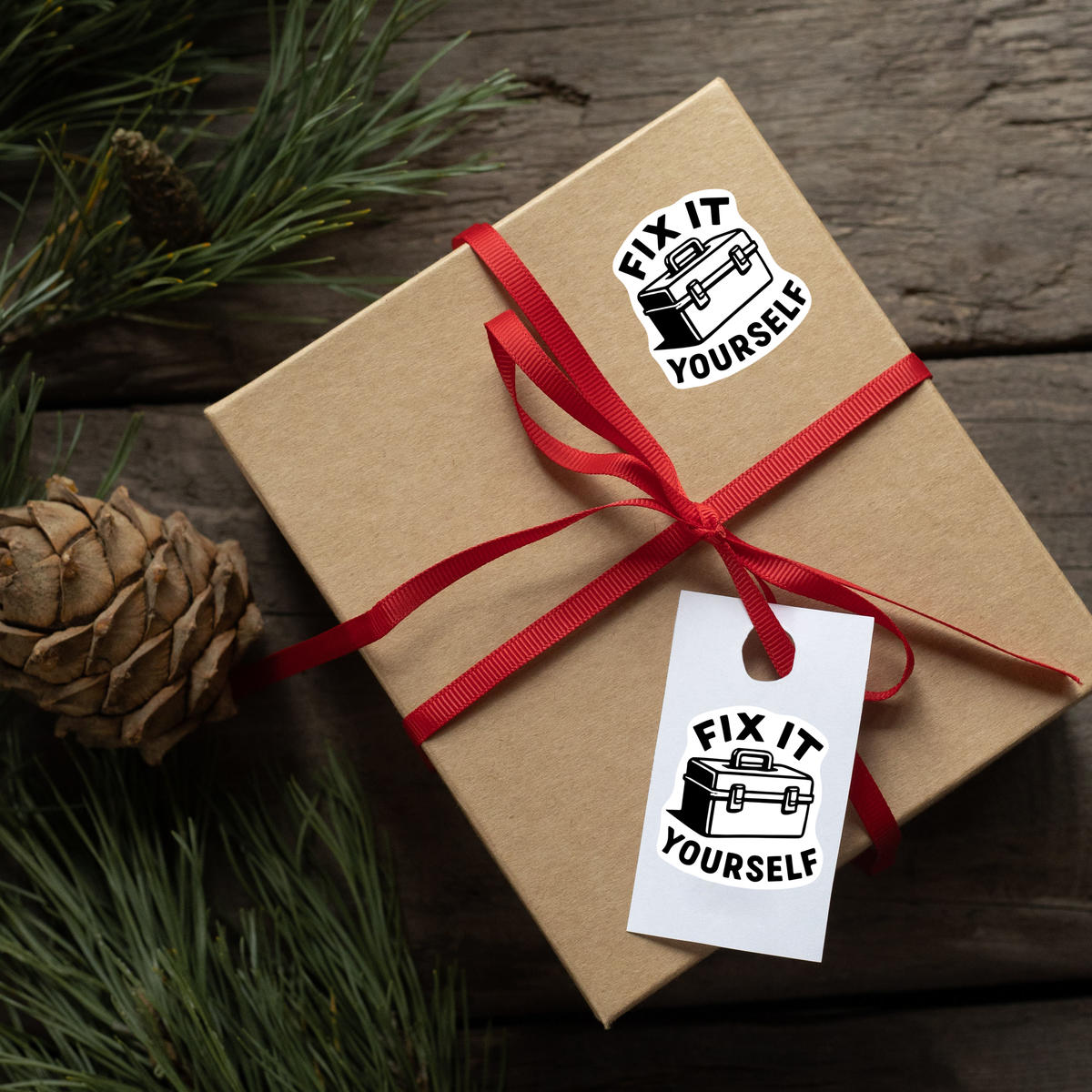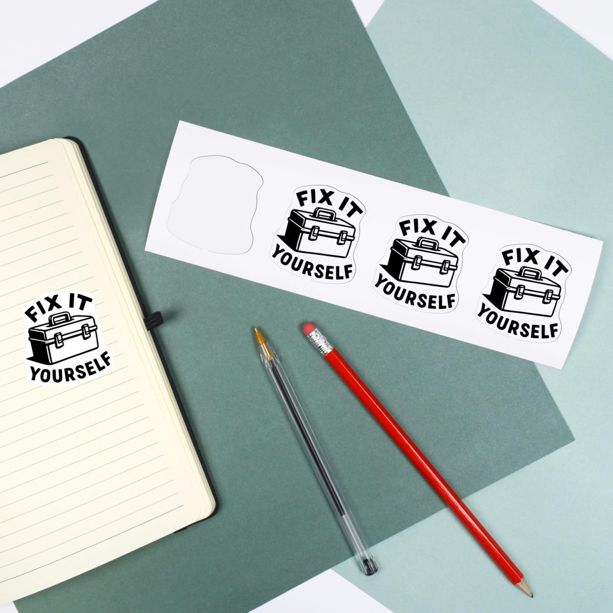 'Fix It Yourself text with a toolbox container for tools, perfect for the home improvement enthusiast.'