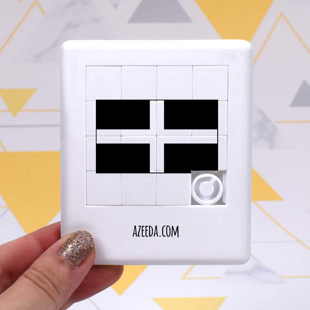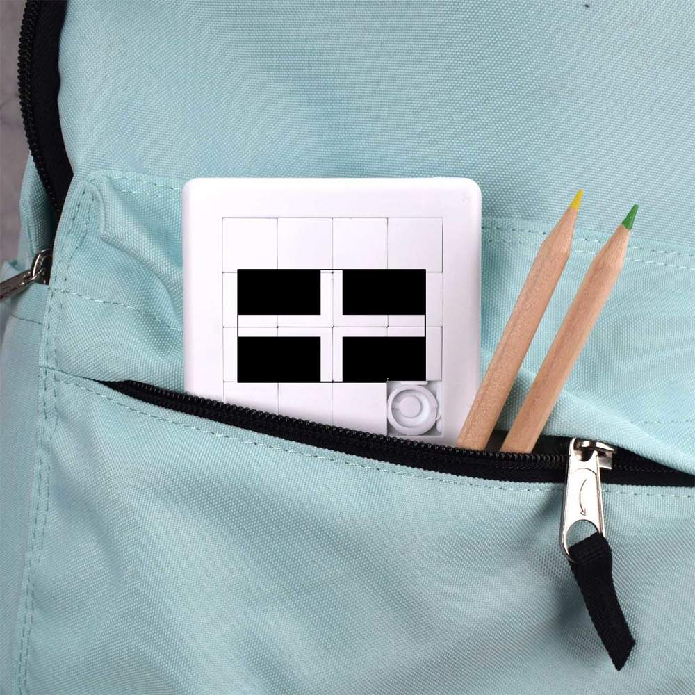 • Pocket sized puzzle with sliding square pieces