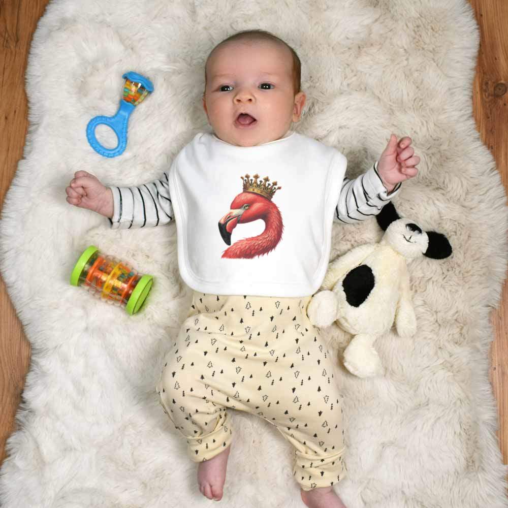 'Flamingo Wearing Crown' Soft Cotton Baby Bib (BI00062455)