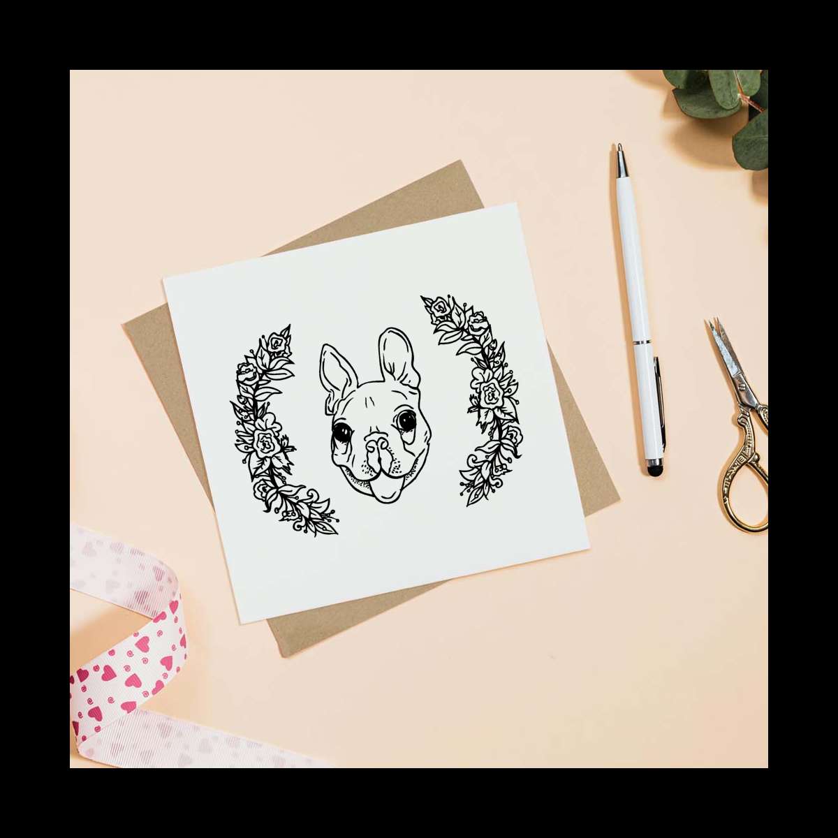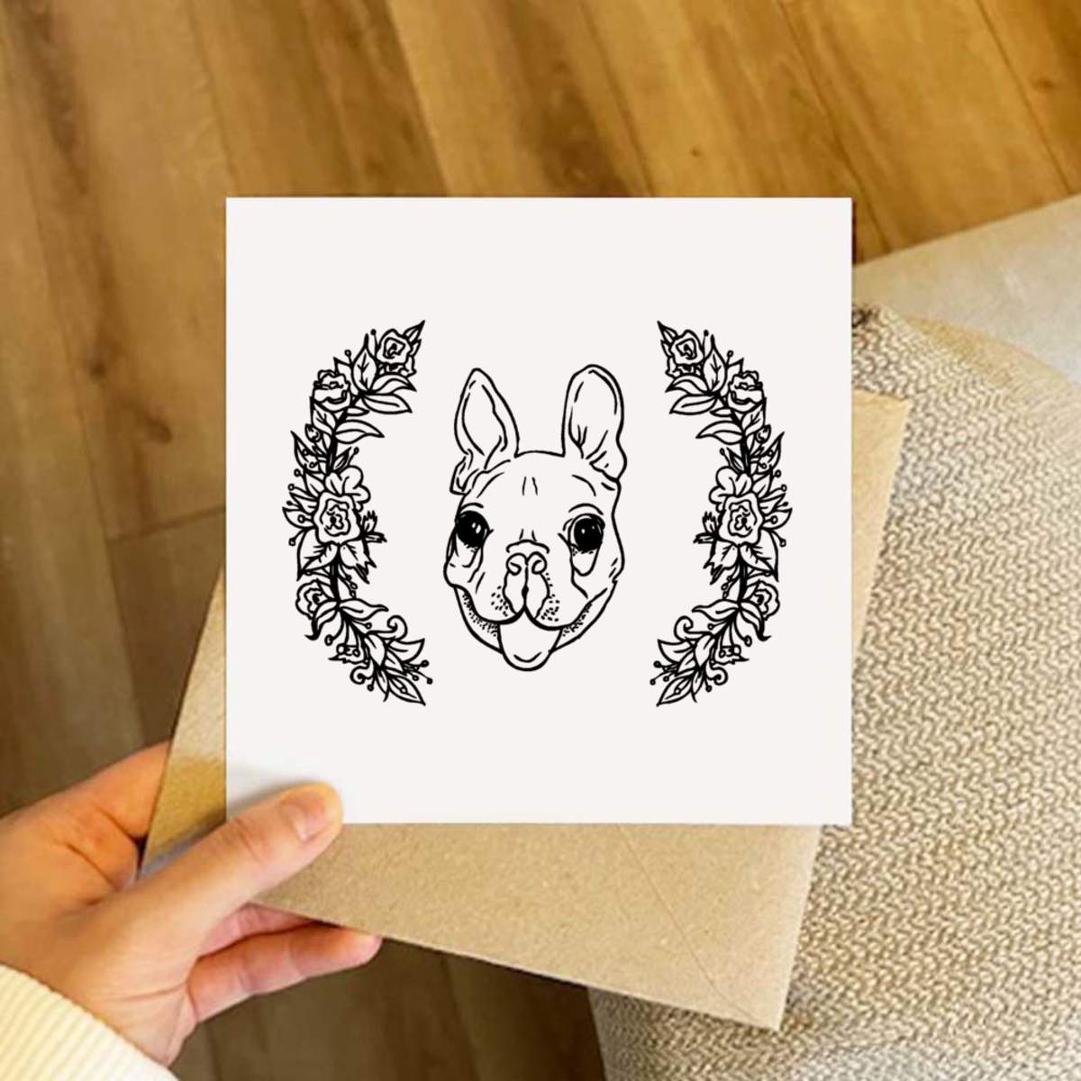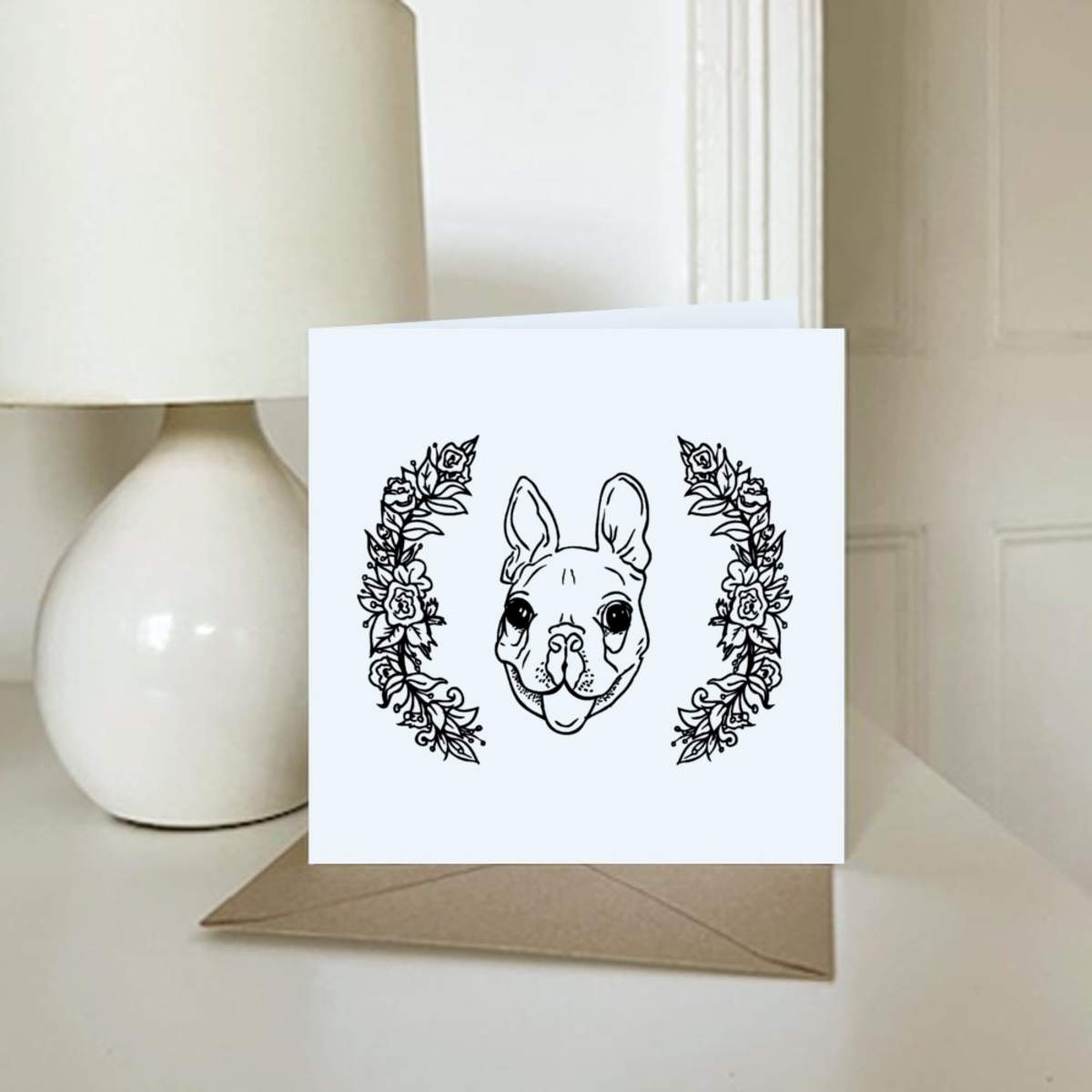 - Square greeting card supplied with a recycled brown envelope