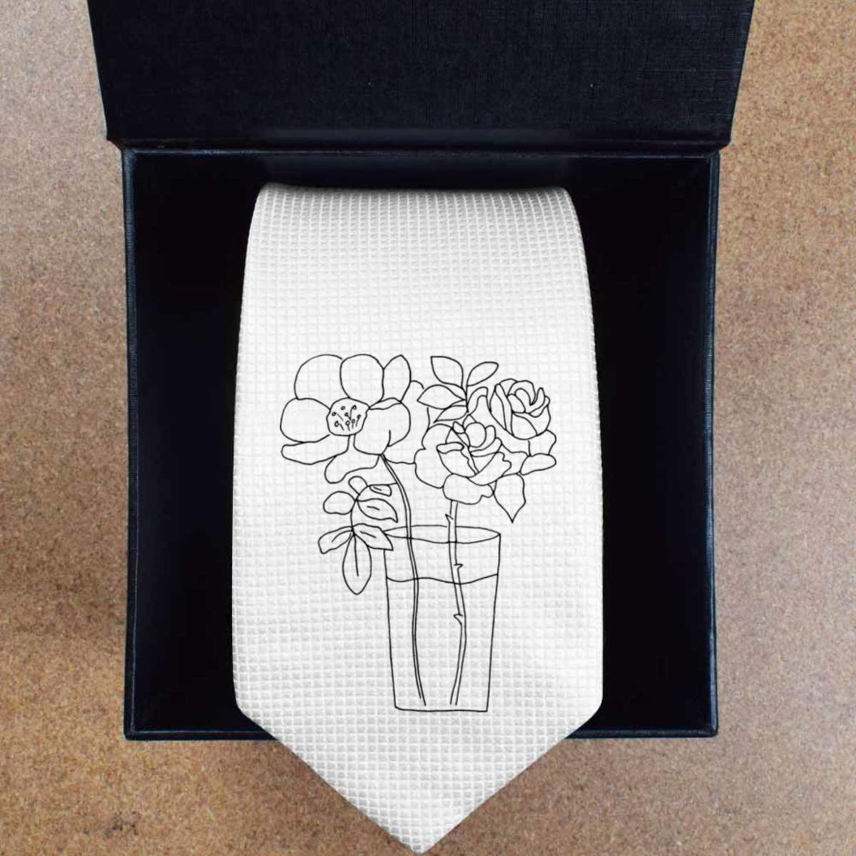 'Flowers In Vase' White Tie / Necktie with Gift Box (AT00004533)