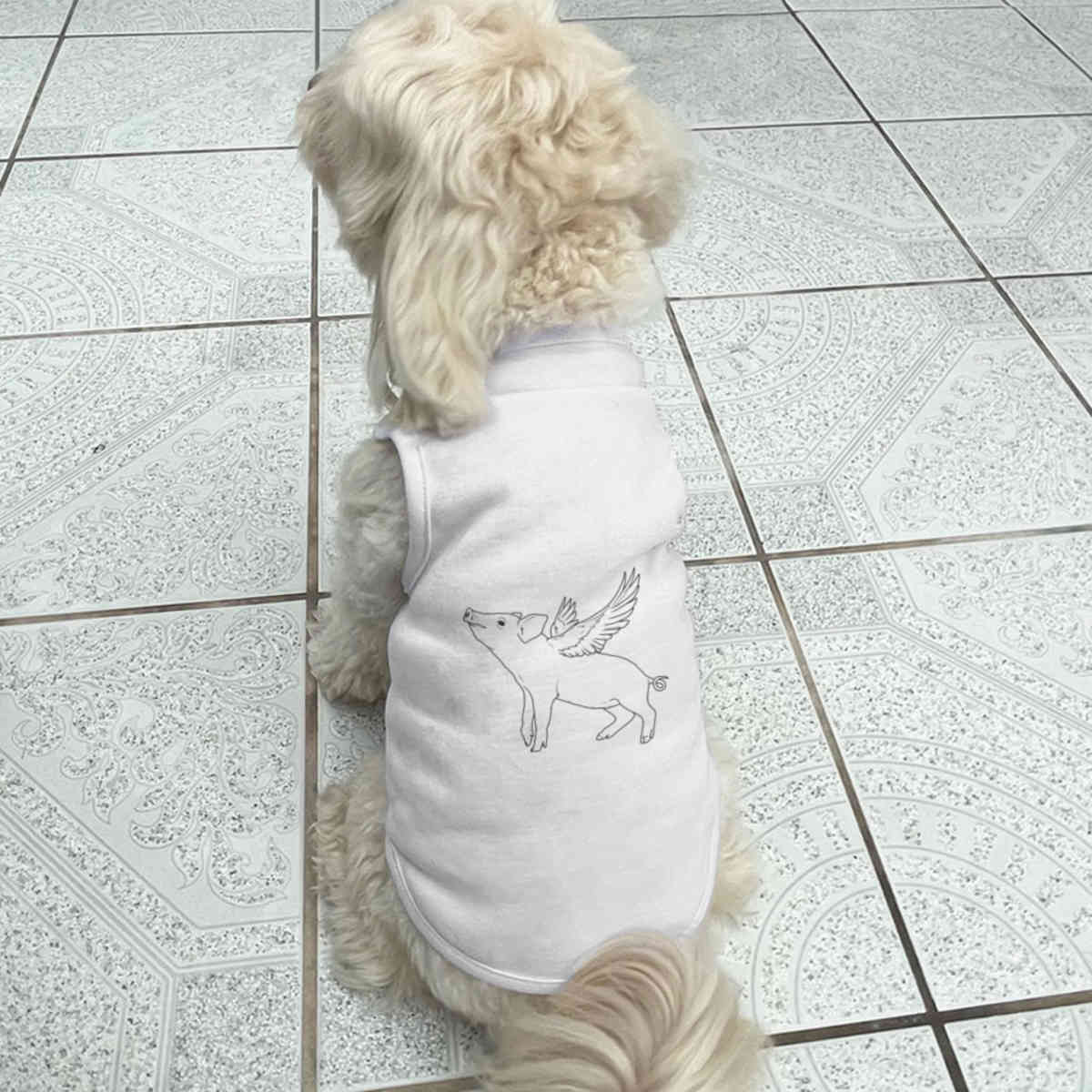 Give your furry friend a fresh new look with this adorable white dog T-shirt, designed to turn heads with its unique print on the back! Made from 100% polyester, it offers a comfortable yet firm stretch, perfect for both playtime adventures and cozy cuddles. Whether your dog loves to play outdoors or cuddle indoors, this T-shirt provides all-day comfort and style.