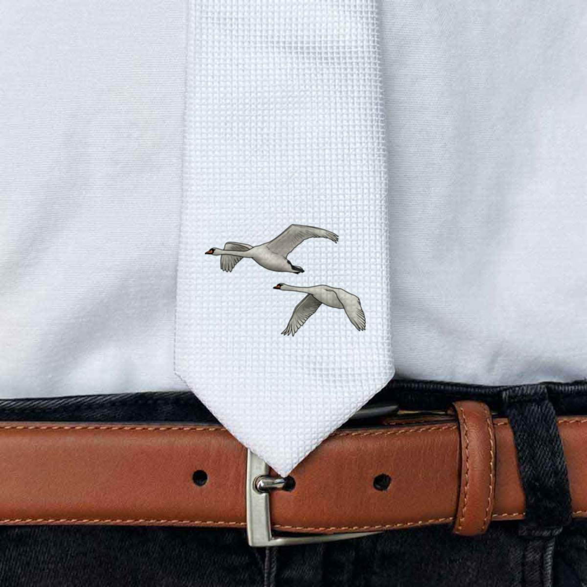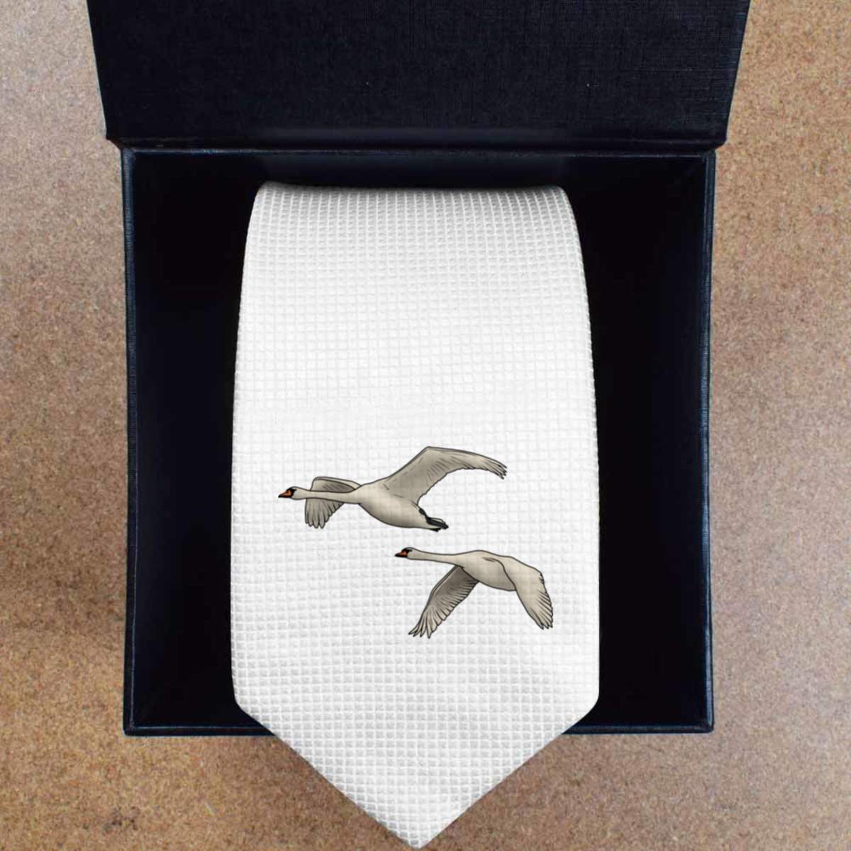 'Flying Swans' White Tie / Necktie with Gift Box (AT00012215)