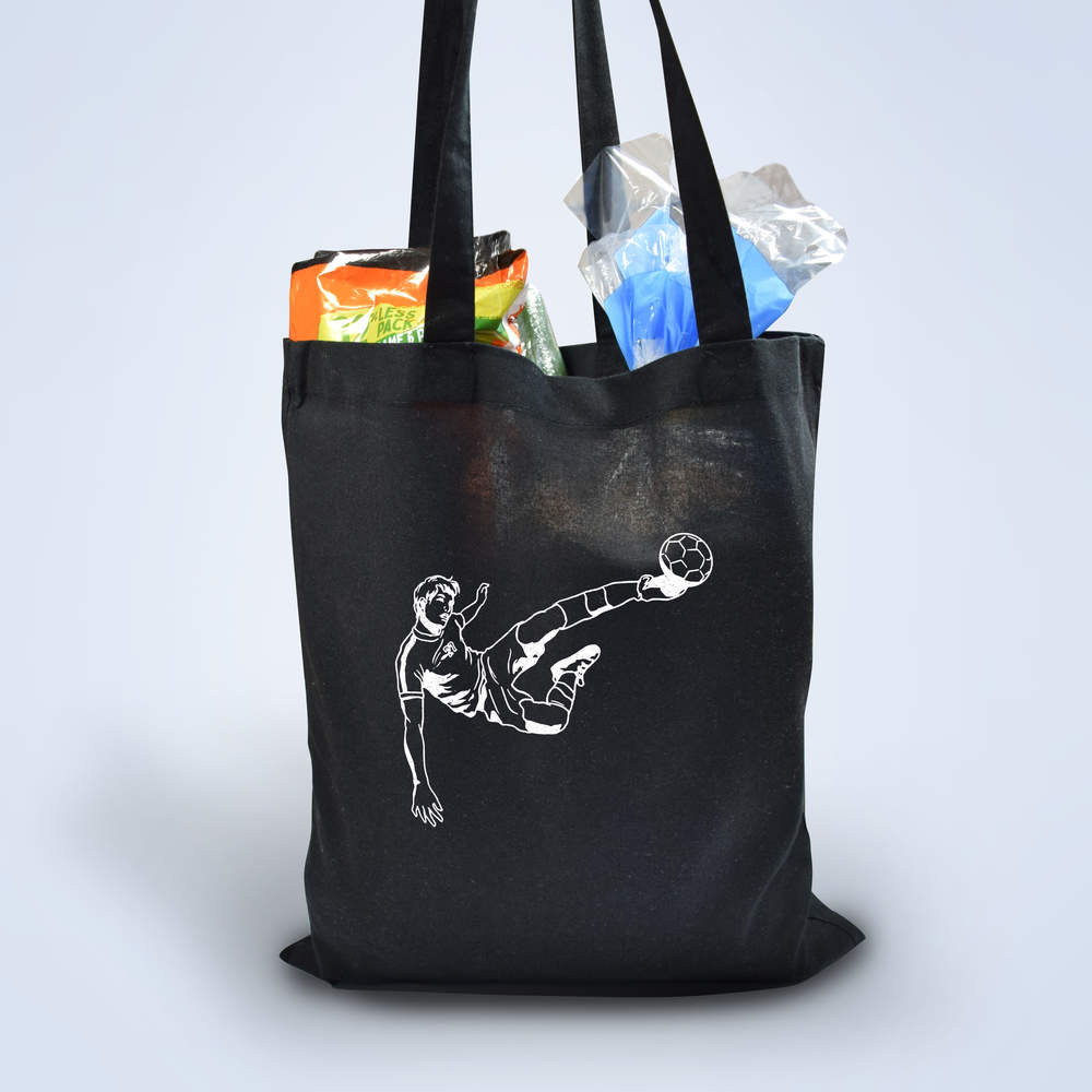 'Football Kick' Classic Black Tote Shopper Bag (ZB00010190)
