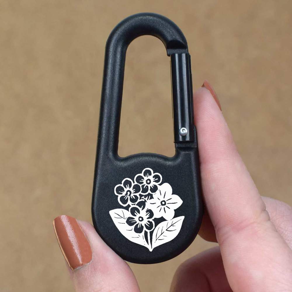 - Secure plastic carabiner clasp for attaching to backpacks, belts and equipment