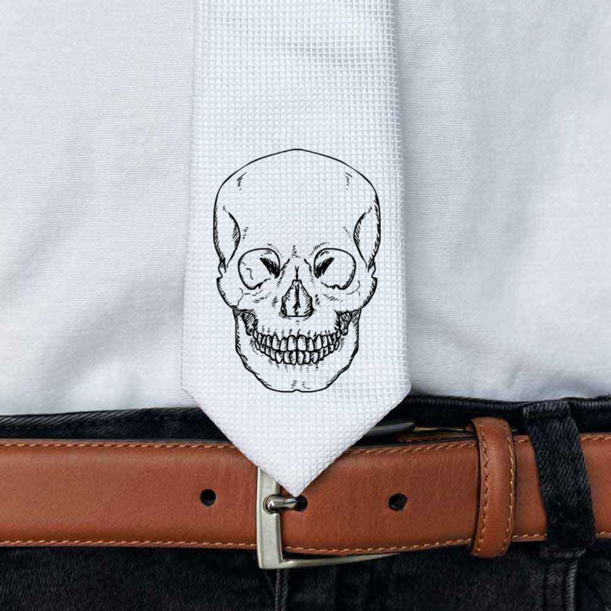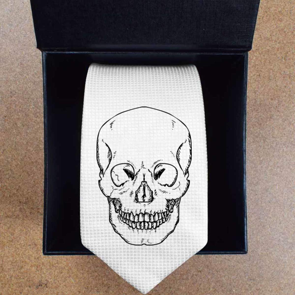 'Forward Facing Skull' White Tie / Necktie with Gift Box (AT00000087)