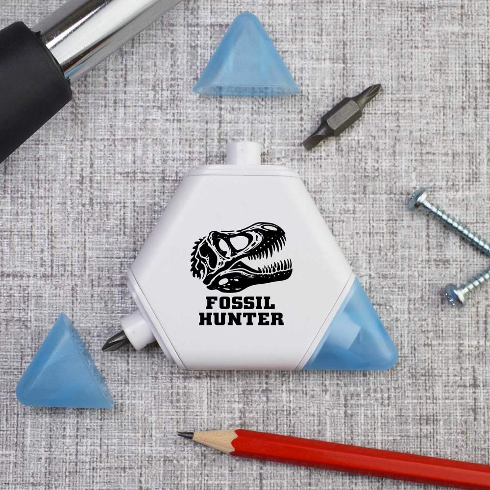 Our triangular compact multi tool is printed on one side with a unique design, making it a great gift for DIY lovers. This 3-in-1 tool set contains a tape measure and 2 different screwdriver attachments and each corner has a snap shut lid. One corner reveals a 1 meter tape measure, while the others hide two reversible screwdriver attachments, one larger and one smaller, both of which have a cross head on one end and a flat head on the other.