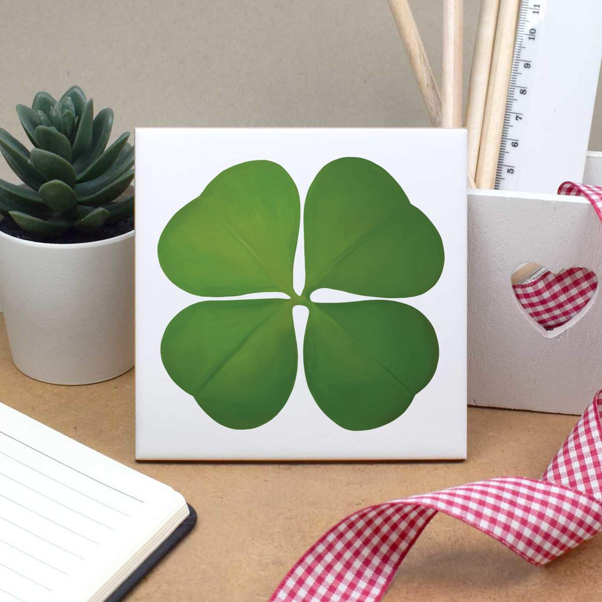 'Four Leaf Clover' 108mm Square Ceramic Tile (TD00007730)