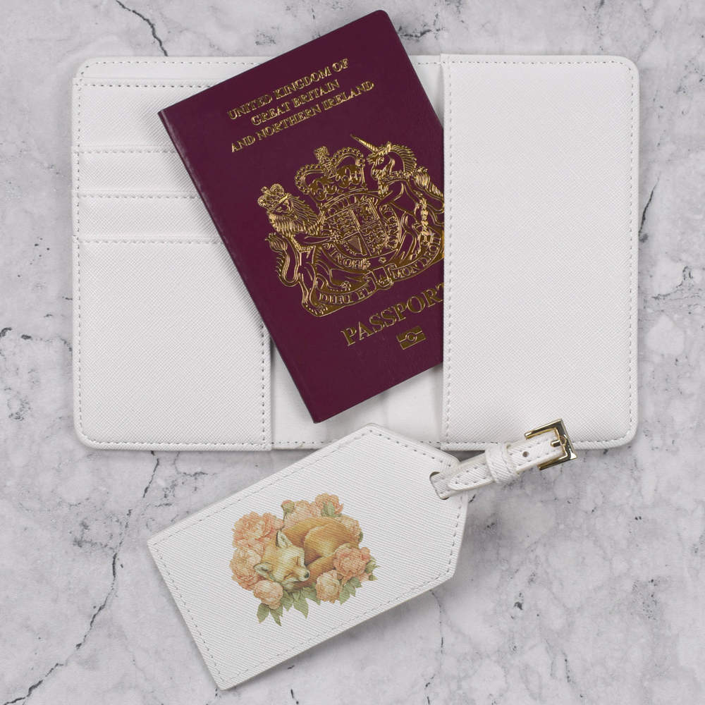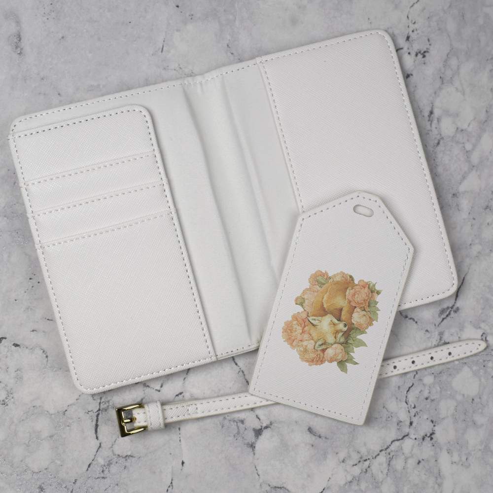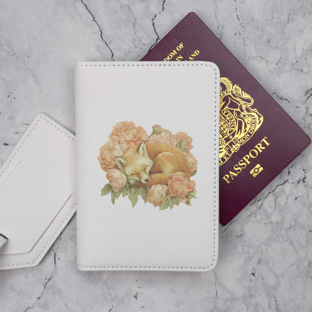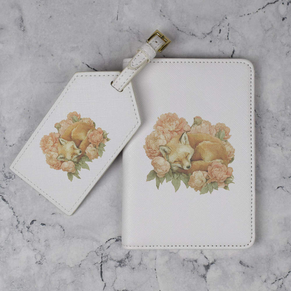 'Fox Sleeping with Flowers' Passport Cover & Luggage Tag Travel Set (PA00036891)