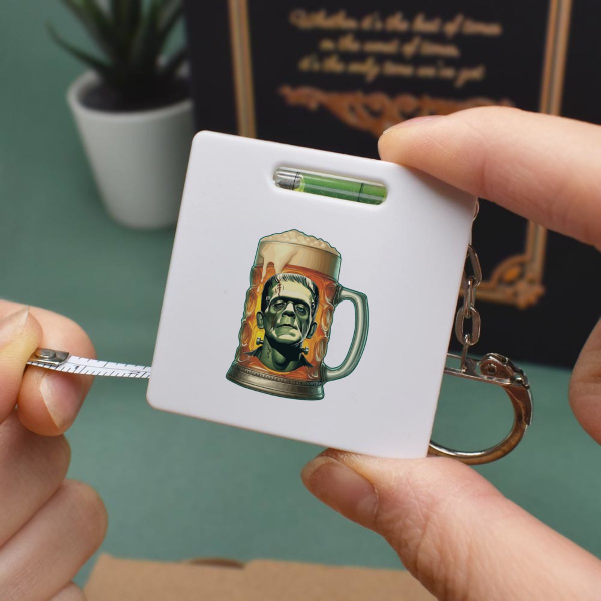 This multifunctional tool offers both a tape measure and spirit level in one handy little accessory. The retractable, 1 metre tape measure has both imperial and metric units, while the flat edges around its plastic casing provide the ability to check both vertical and horizontal surfaces with a mini spirit level. The compact and lightweight design makes it easy to carry around; simply attach with the keychain provided and whip it out when needed. Each keyring tape measure tool is printed on one side with a unique design.