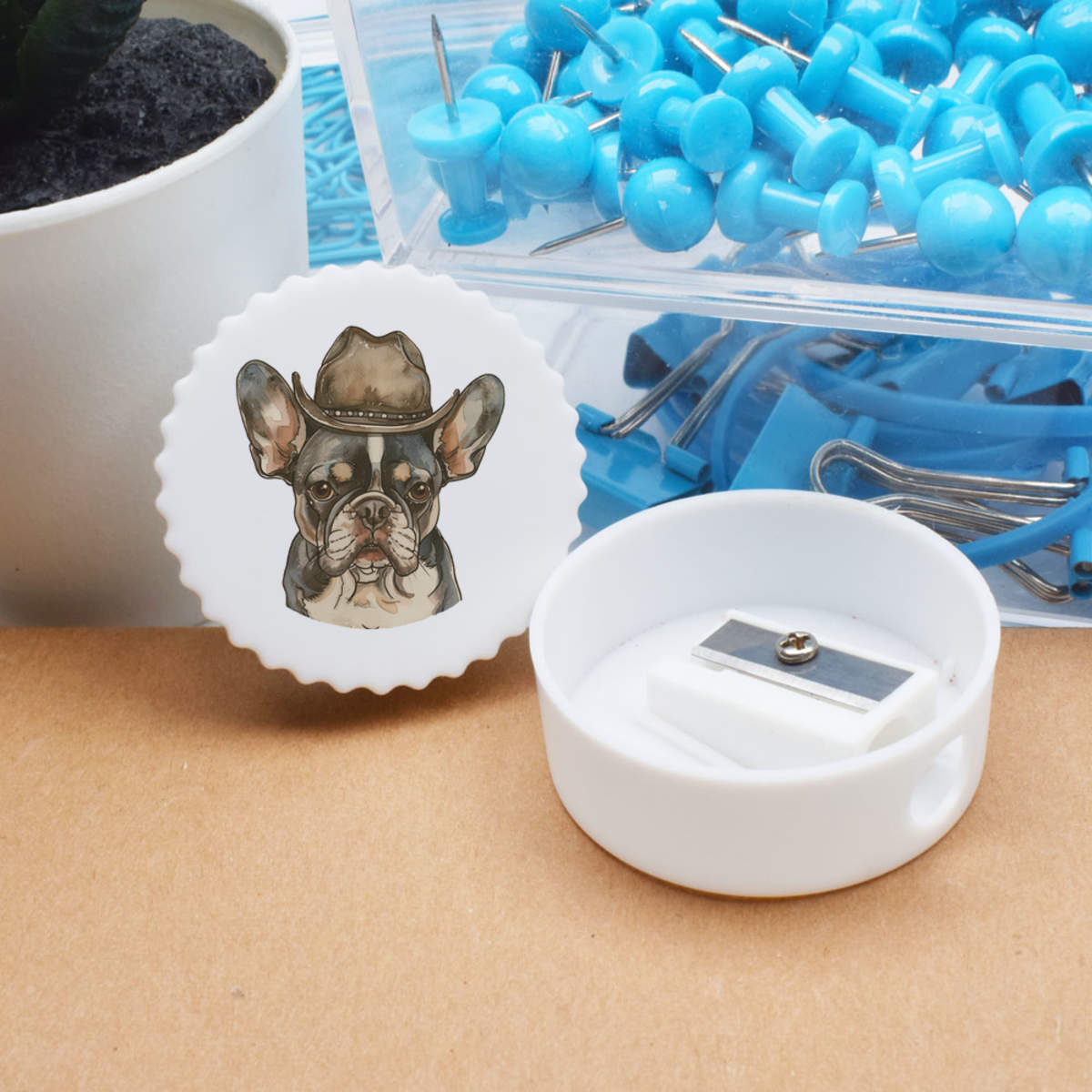 'French Bulldog Wearing Cowboy Hat' Compact Pencil Sharpener (PS00048831)