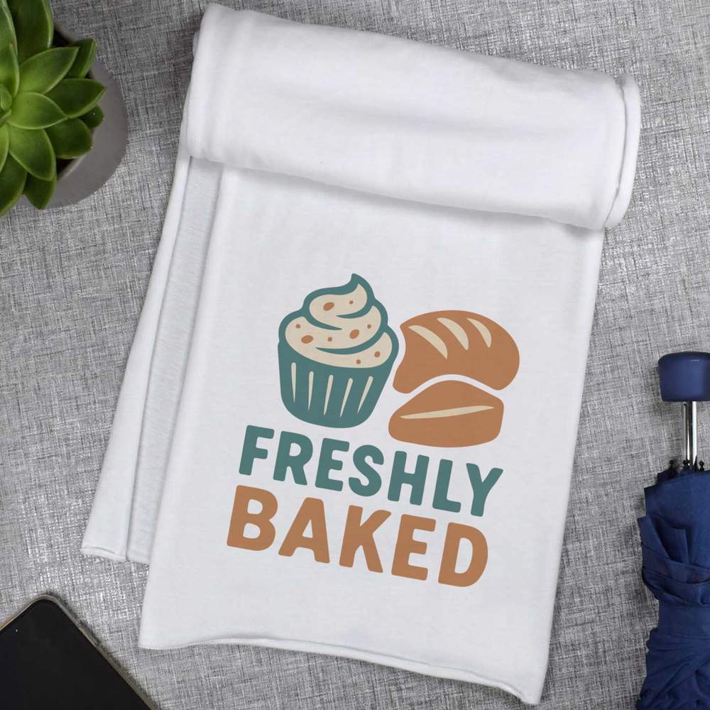 'A delightful design celebrating delicious baked goods, featuring a cupcake and loaves, perfect for bakers and food lovers.'