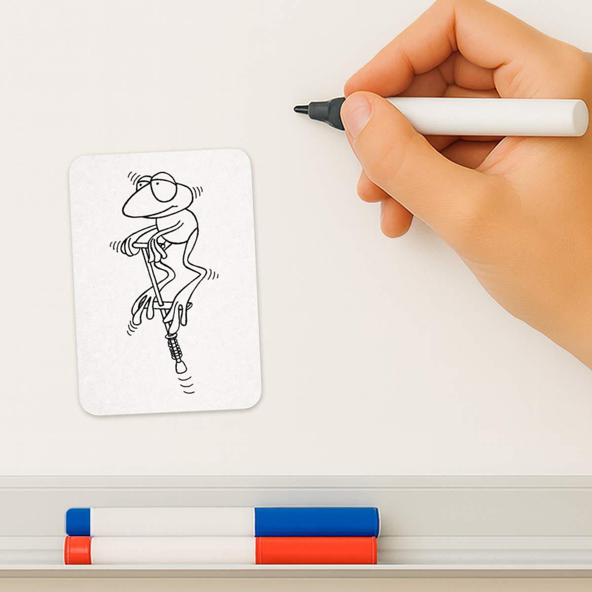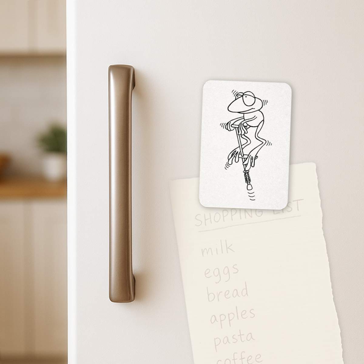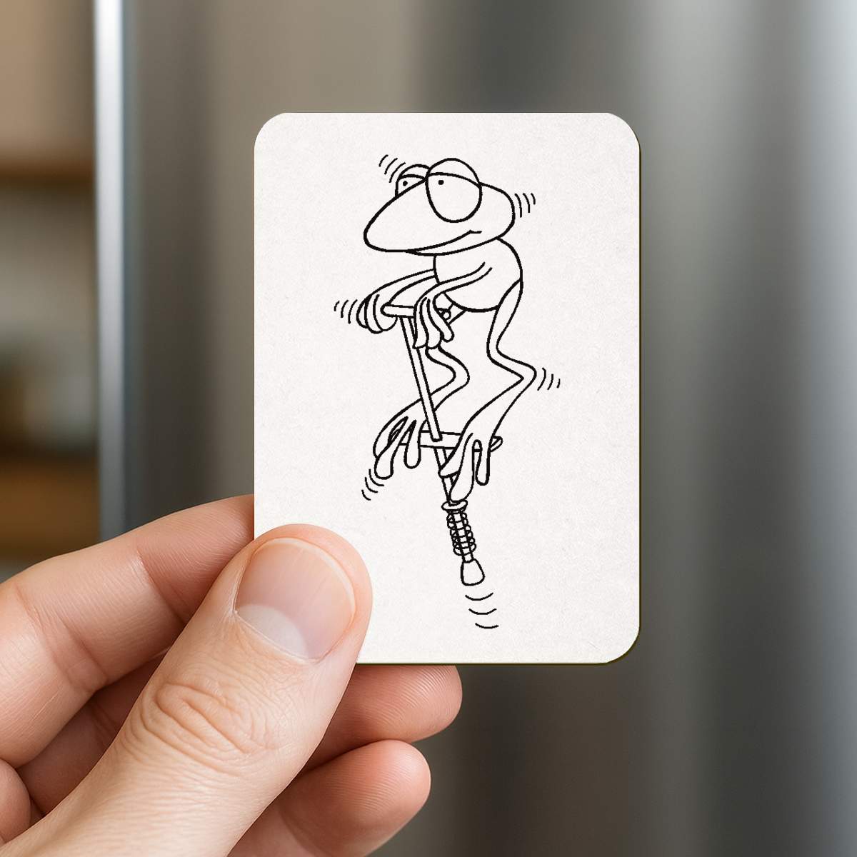 'Frog On Pogo Stick' Rectangular Fridge Magnet - Decorative Refrigerator & Whiteboard Magnet for Home, Kitchen or Office - 70mm x 49mm (FM00039946)
