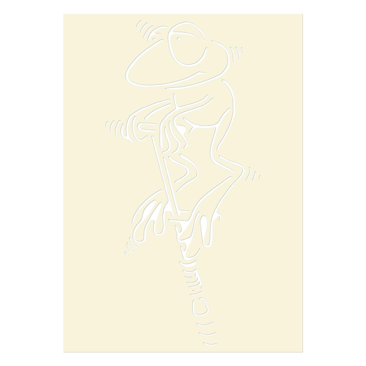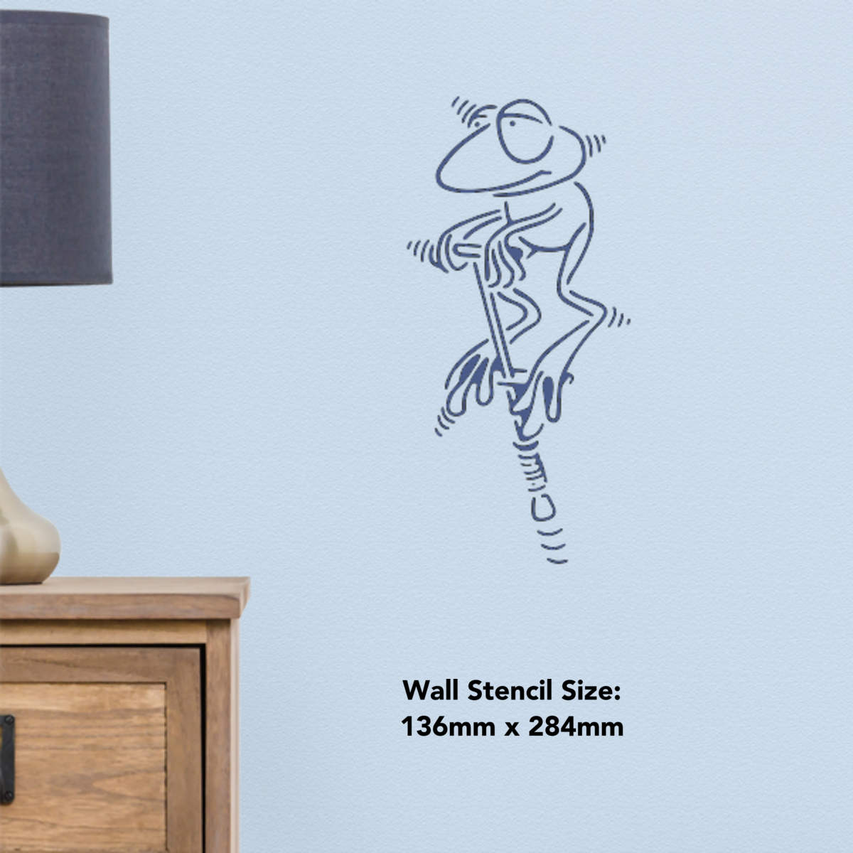 'Frog On Pogo Stick' Reusable Stencil – Durable Decorative Template for Painting and Spraying on Walls, Tiles, Wood, Fabric & Craft Projects - L (A4) (WS00010699)