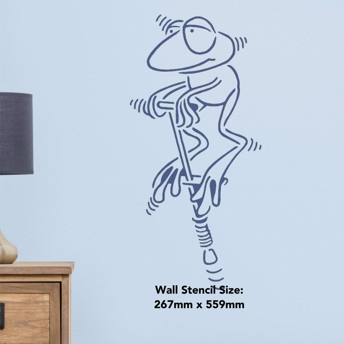 'Frog On Pogo Stick' Reusable Stencils – Durable Decorative Templates for Painting and Spraying on Walls, Tiles, Wood, Fabric & Craft Projects (WS000200)