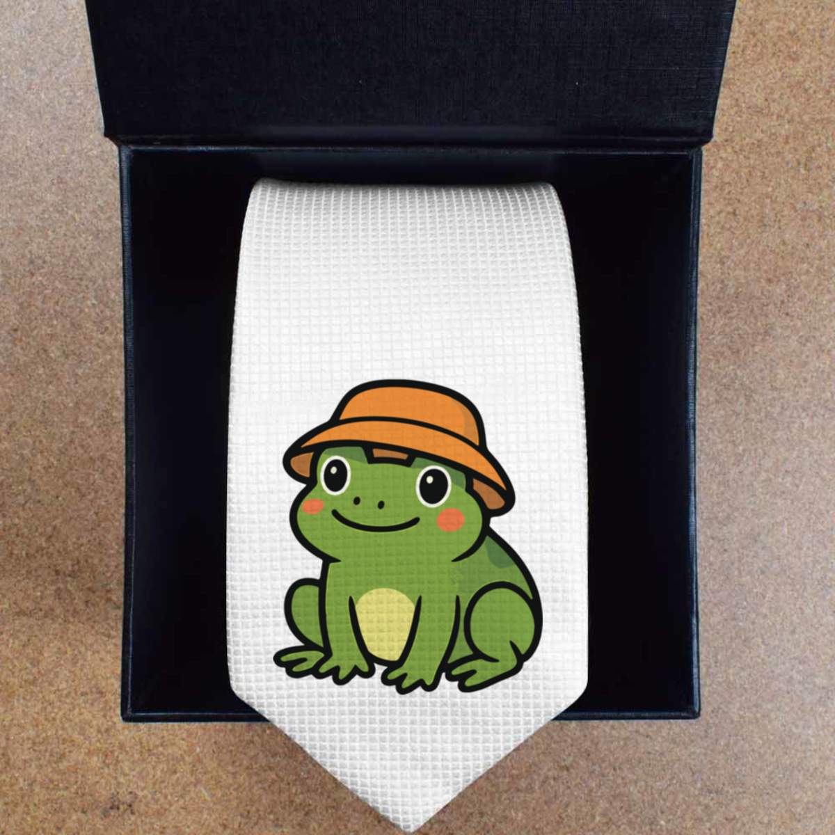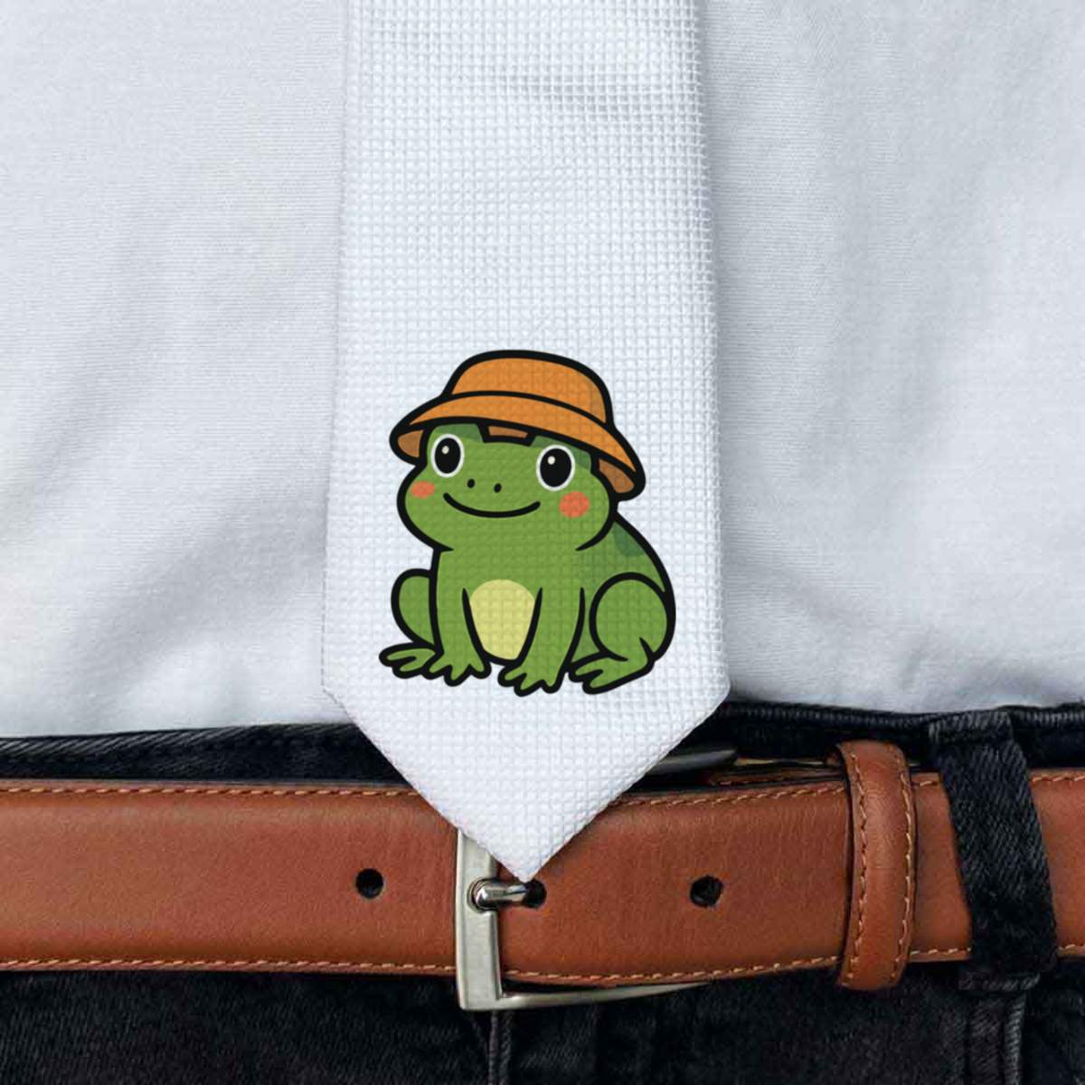 'A cute frog wearing a bucket hat.'