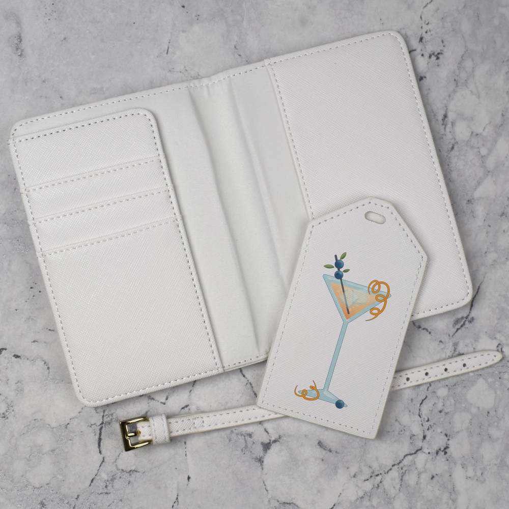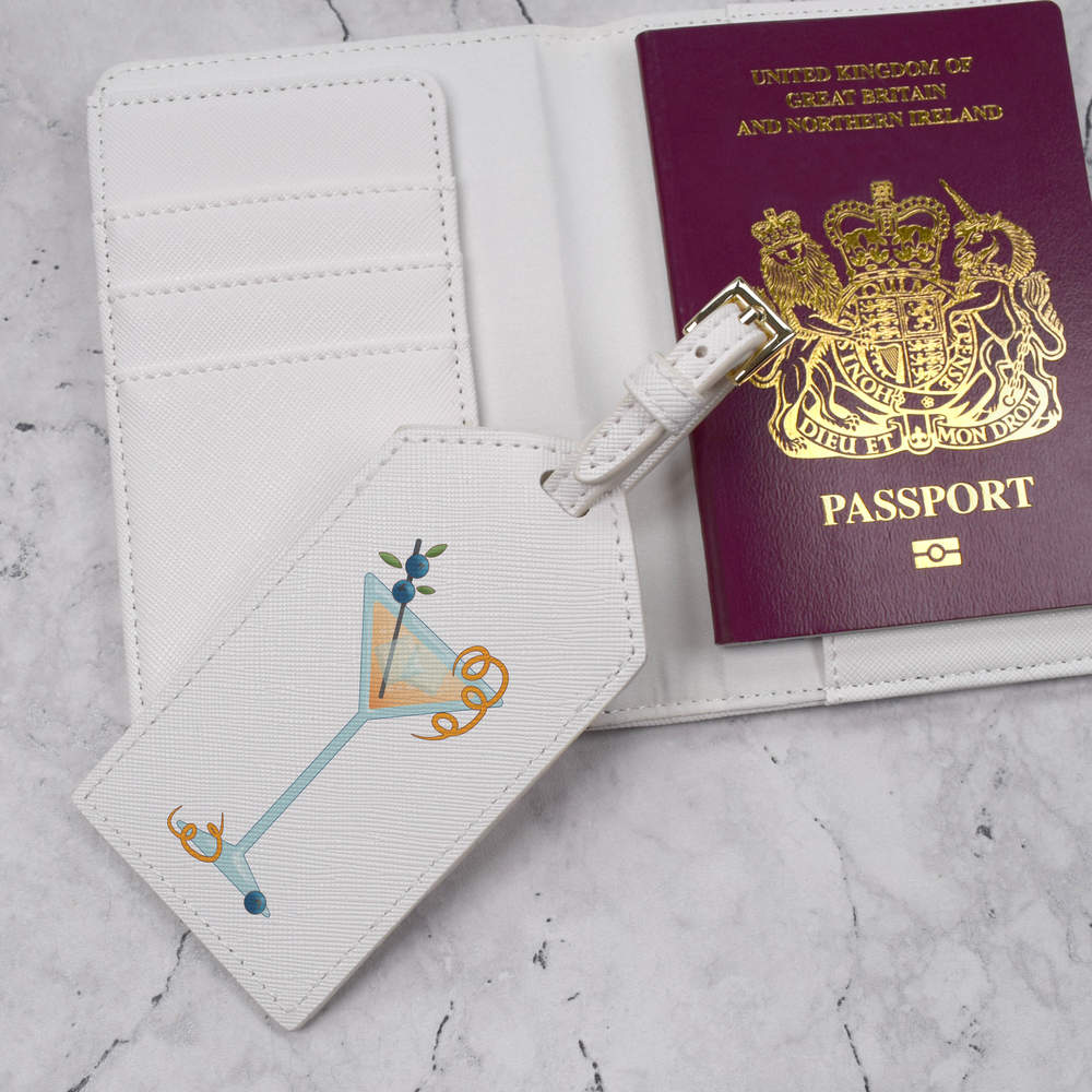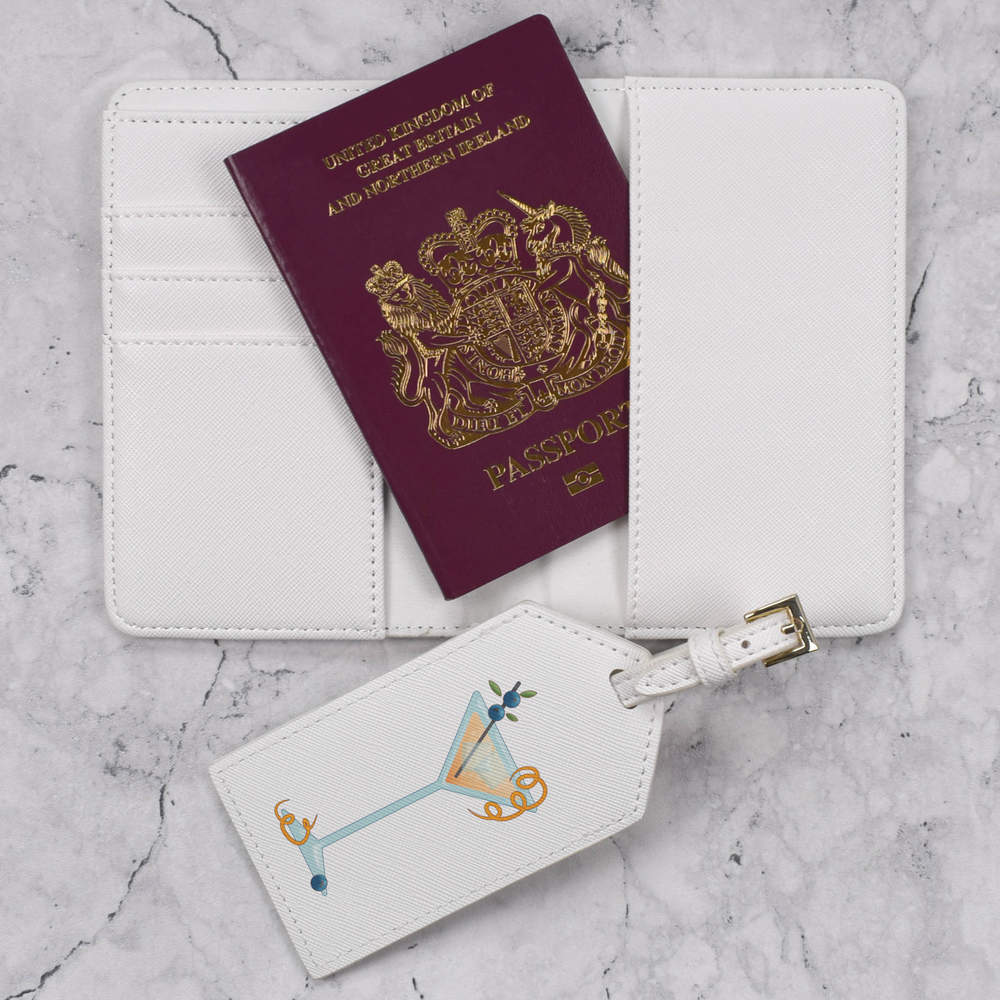 A luxury travel set for holiday makers and jet setters! This premium duo consists of a passport cover and matching luggage tag; both made from white, leather-look PU and printed with a unique design.