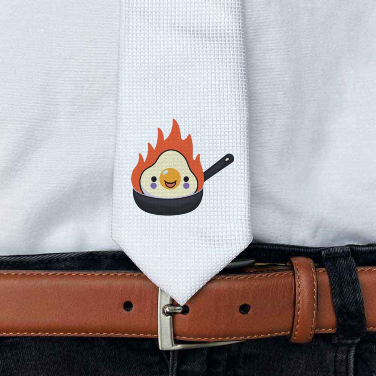 This stylish slim white tie is guaranteed to add class to any outfit. Printed on the front with a design from one of our talented designers, these ties are perfect for formal events, special occasions or making a statement at the office.