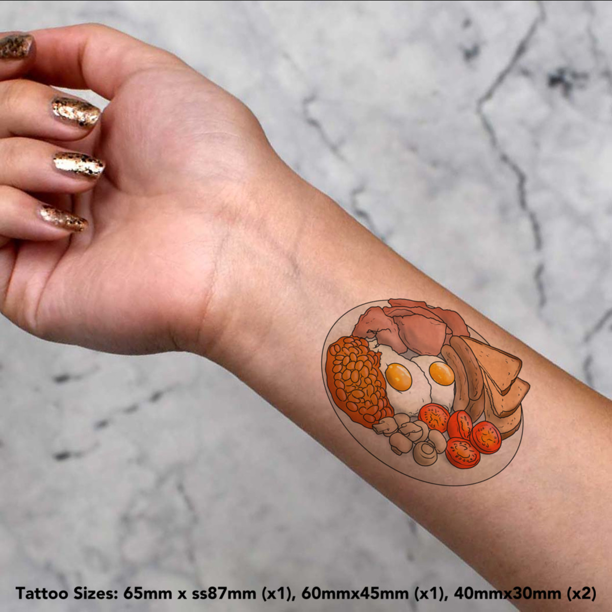 'Full English Breakfast' Temporary Tattoos - Water Resistant, Skin-Safe, Non-Toxic Transfers (TO038132)