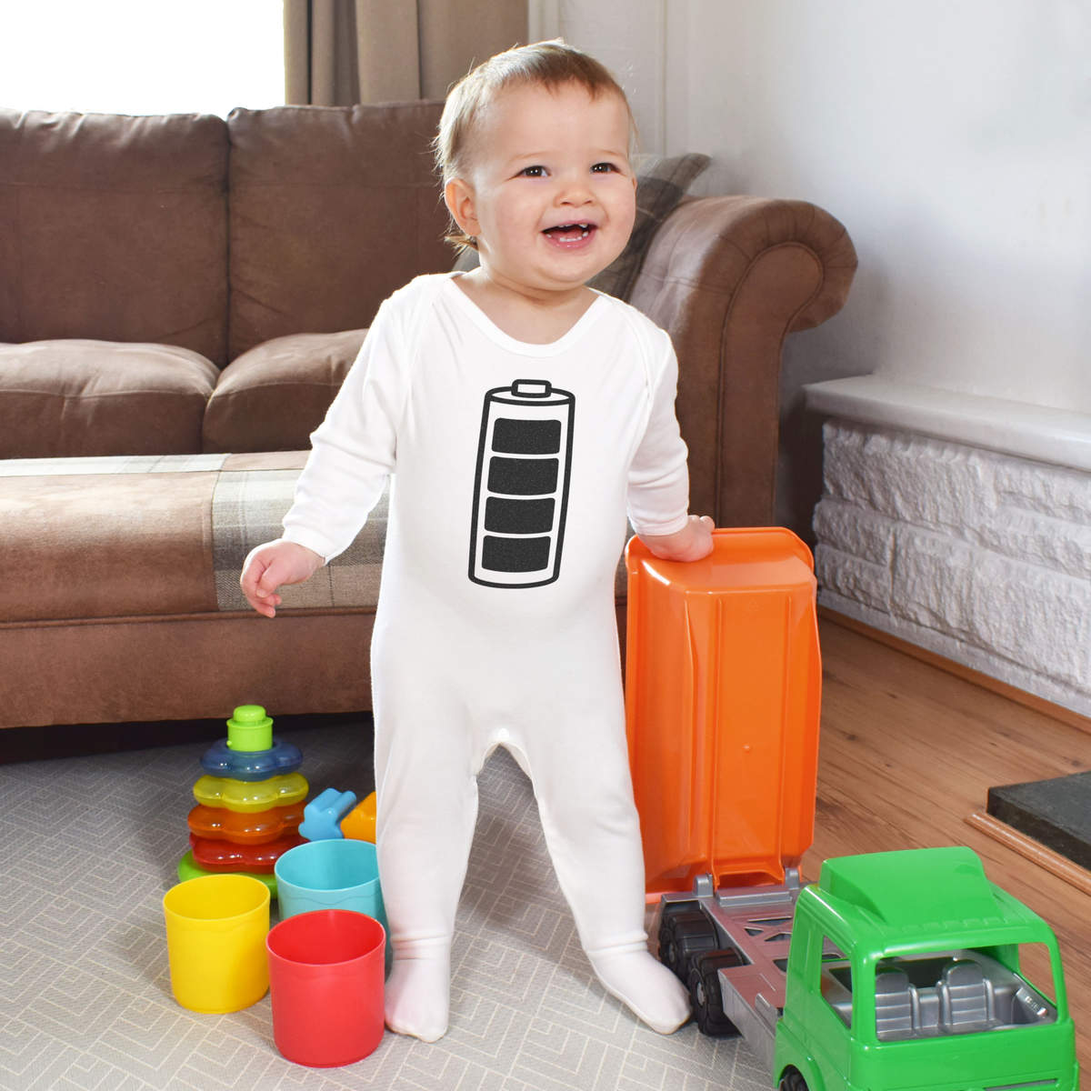 Little ones can sleep peacefully in this super soft romper sleepsuit. Our unisex jumpsuits are made from 100% cotton and are printed on the front with a unique design. Practical functions include popper fastenings for ease of changing and built-in feet.