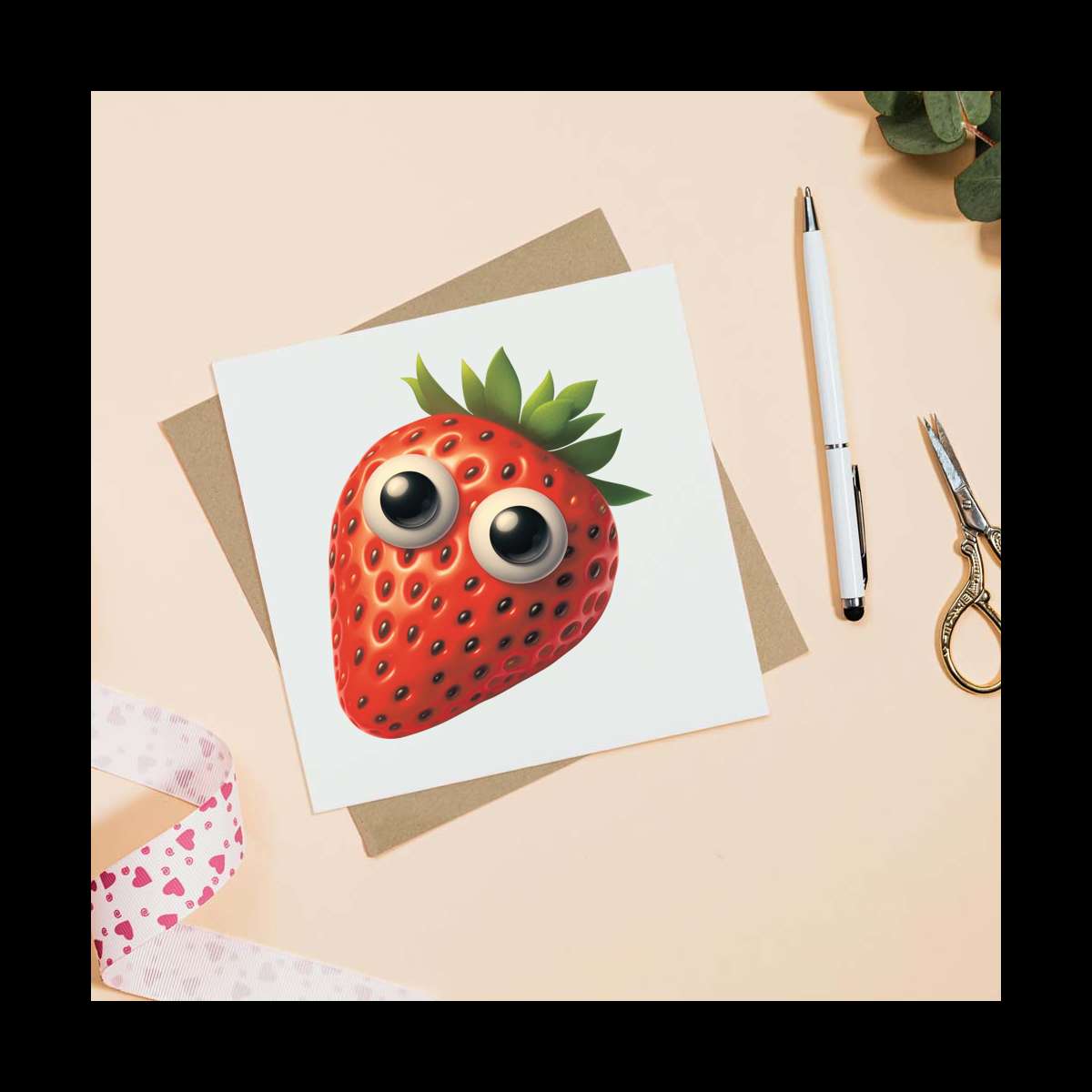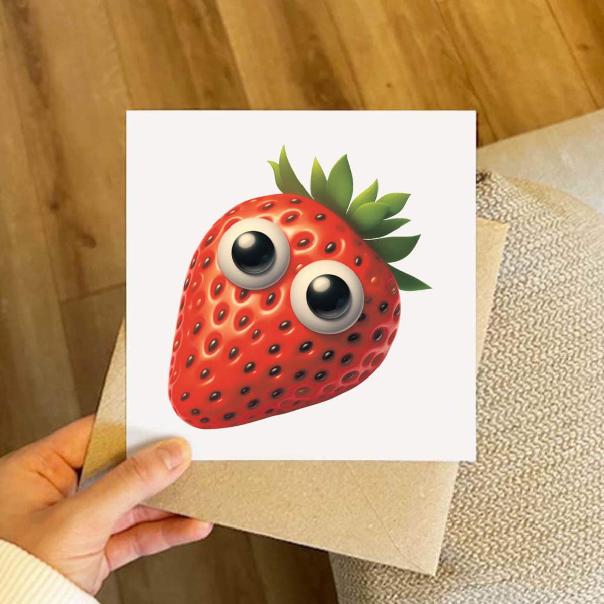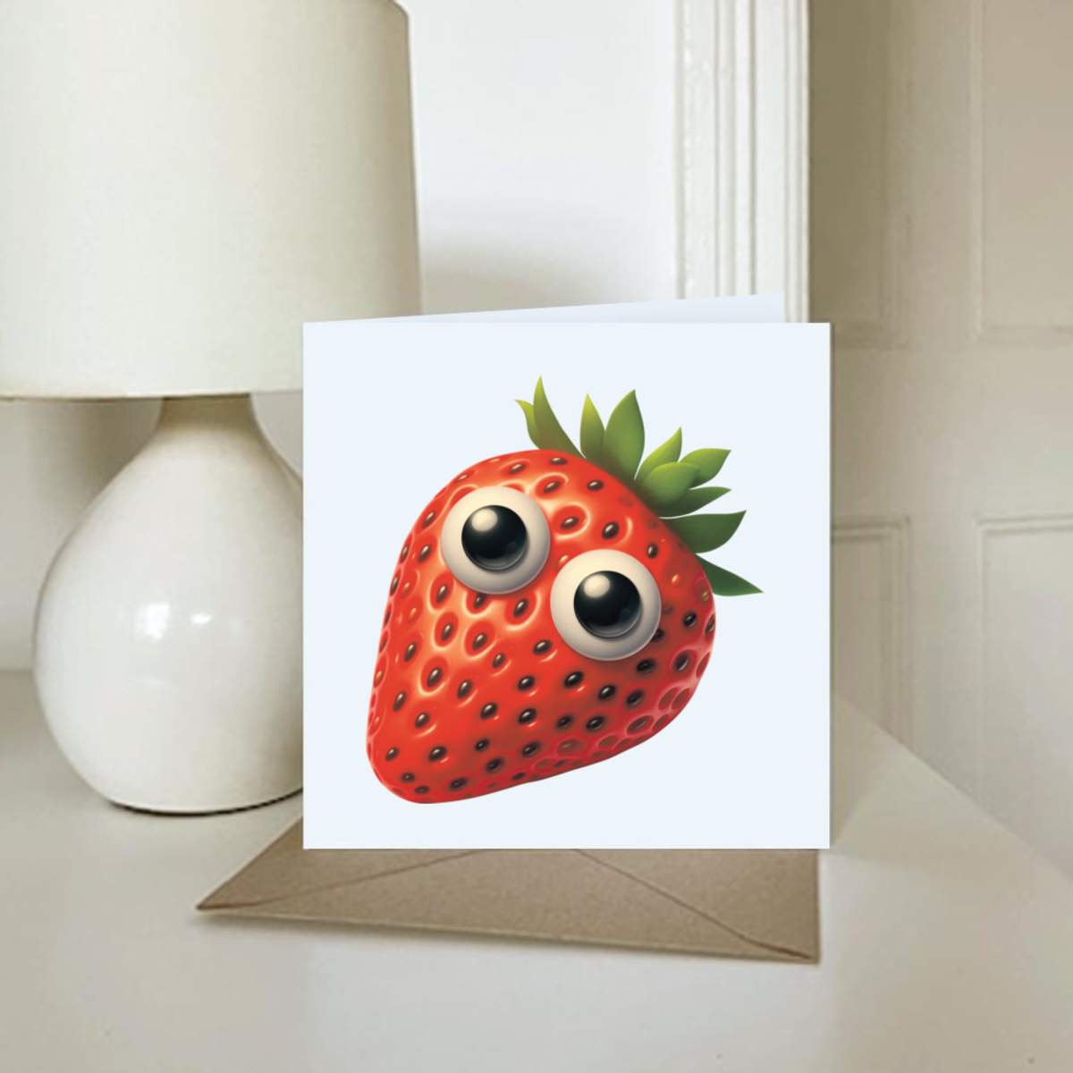 - Square greeting card supplied with a recycled brown envelope