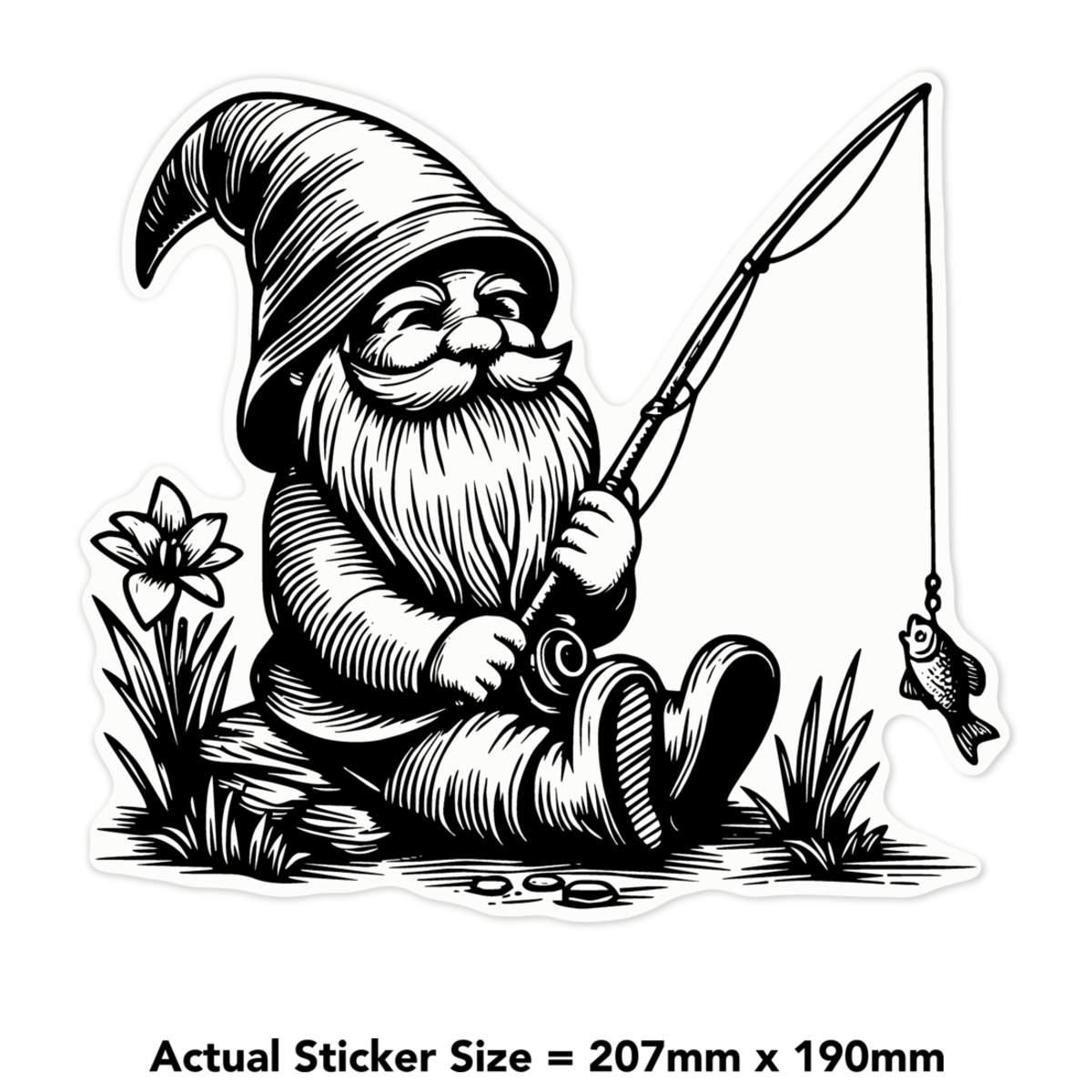 'Garden Gnome With Fishing Rod' Clear Premium Vinyl Decal Stickers – Waterproof, Durable & Easy to Apply - For Car Bumpers, Windows, Bins & More - Large (210mm) (DC00132046)