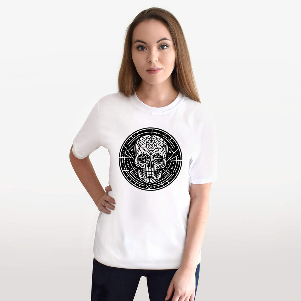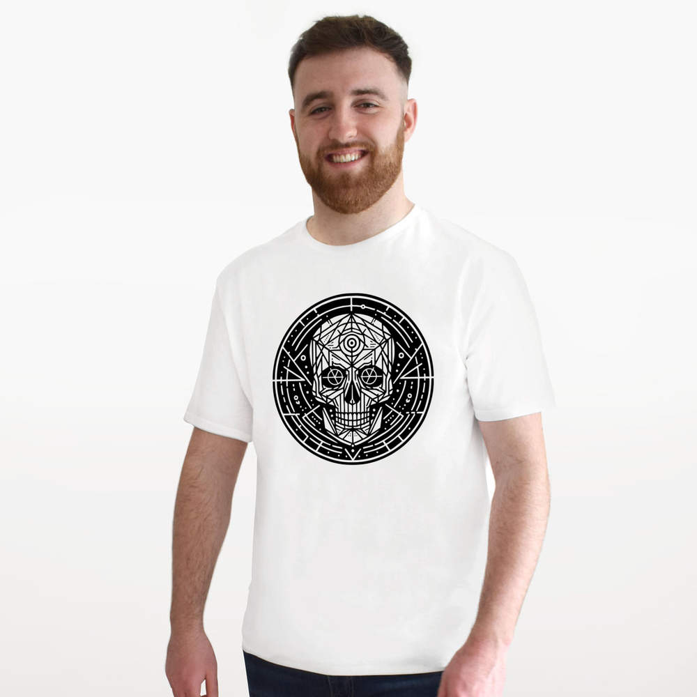 'Geometric Skull' Unisex T-Shirt - 100 % Cotton, White, XXL (TA00287932)