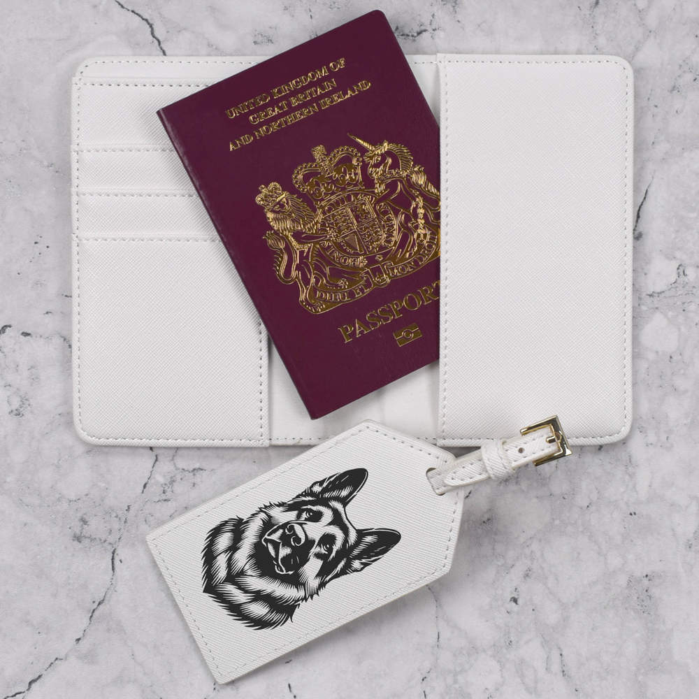 A luxury travel set for holiday makers and jet setters! This premium duo consists of a passport cover and matching luggage tag; both made from white, leather-look PU and printed with a unique design.
