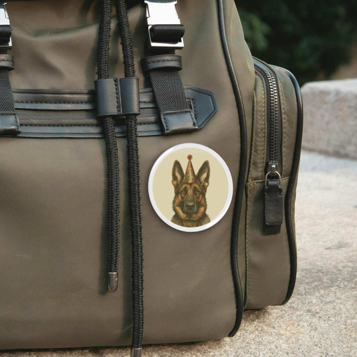 'German Shepherd with Party Hat' Button Pin Badges (BB053046)
